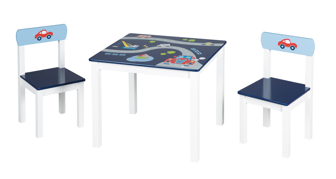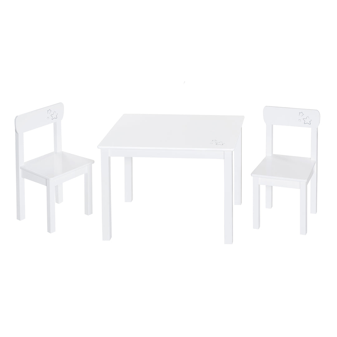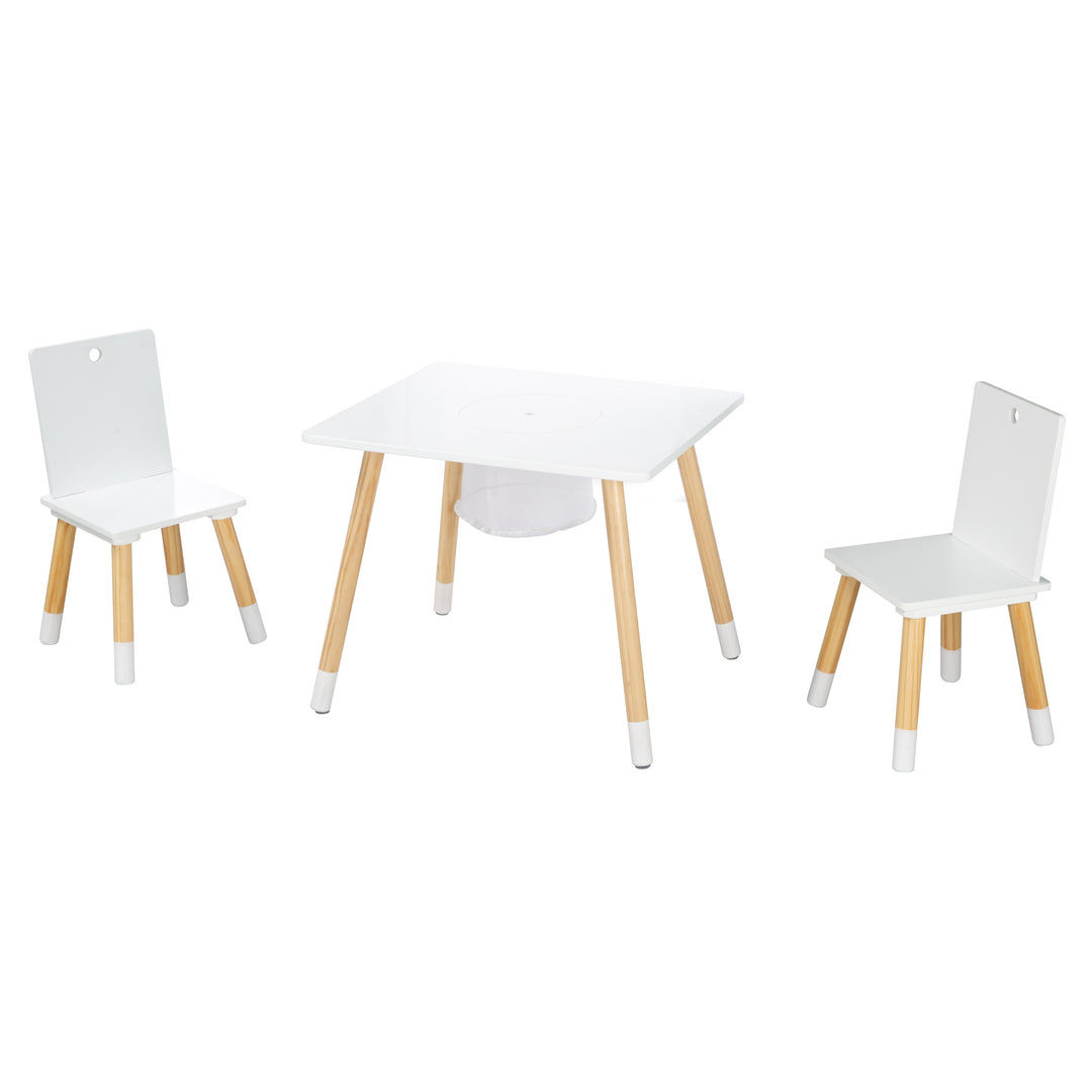 Kindersitzgruppe aus Holz mit Stühlen in der Farbe weiß
