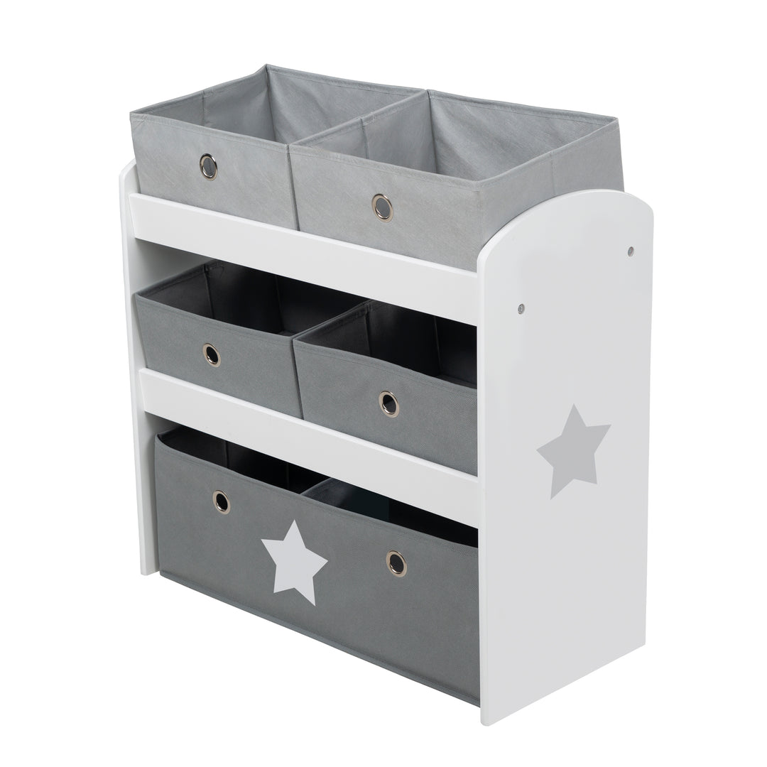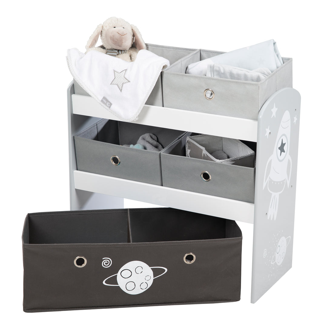 Spielregal 'Rakete', Spielzeugregal, 5 Stoffboxen, Aufbewahrungsregal, für Jungen und Mädchen