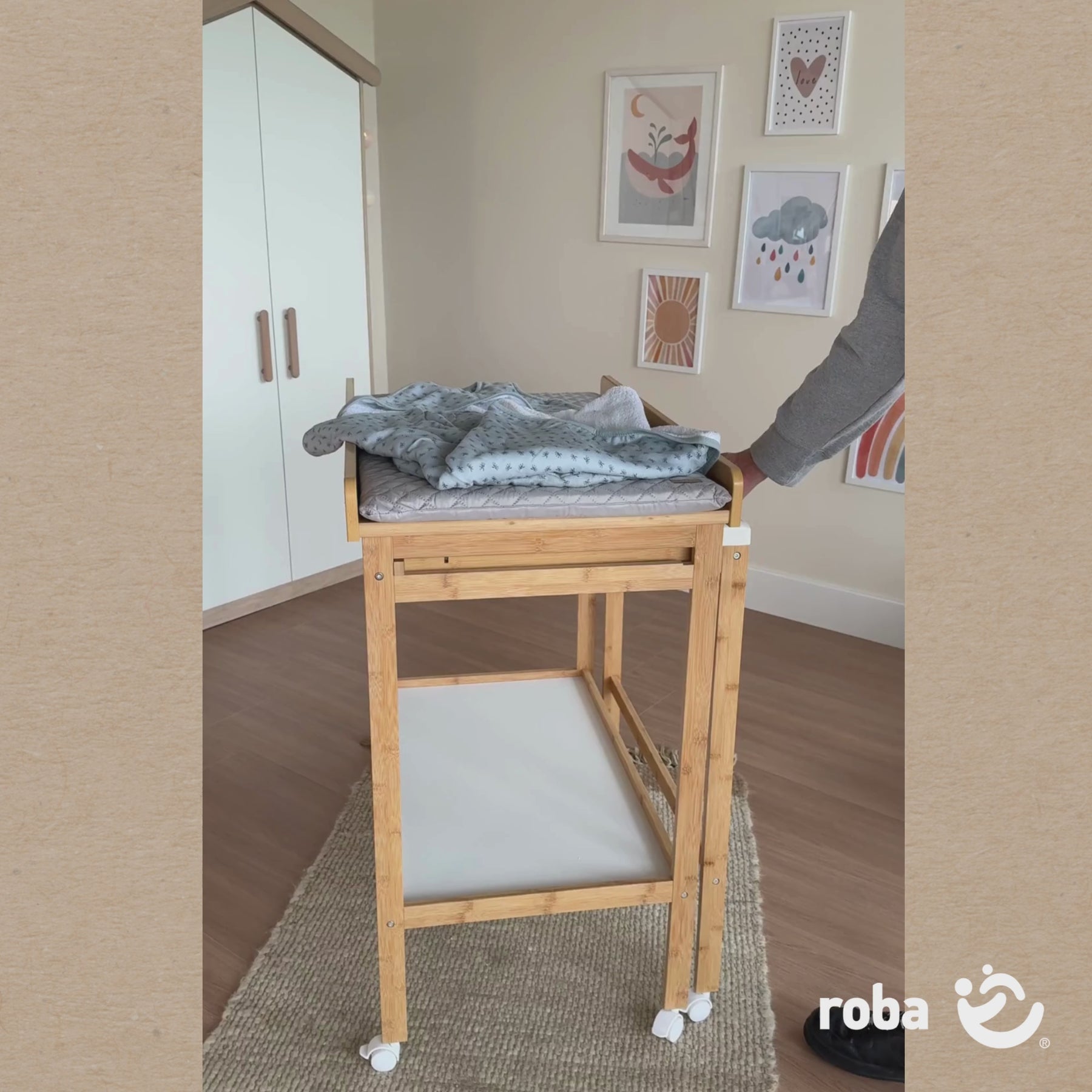 Die roba Bade-Wickel-Kombination 'Baby Pool' inkl. Wickelauflage im modernen 'roba Style'-Design ist mit ihren schlanken Maßen platzsparend und praktisch zugleich. Der Wickeltisch aus lackiertem Holz passt sich mit seinem schlichten Design jedem Ambiente an. Mit einem Handgriff lässt er sich vom Wickeltisch in eine Baby-Badestation verwandeln. Die integrierte Badewanne lässt sich dank der Rollen mühelos herausziehen und wieder platzsparend unter die Wickelfläche schieben. Die angenehme Wickelhöhe von 93,5 cm macht die Babypflege für Eltern und Baby zum Vergnügen. Der Ablaufschlauch der Badewanne ermöglicht es auf einfache Weise, das Badewasser abzulassen, ohne die Wanne zu bewegen. Zusätzlich besitzt die Bade-Wickel-Kombination 6 Bremsrollen für den leichten Standortwechsel sowie ein Ablagefach, um alle notwendigen Pflege-Utensilien verstauen zu können. Die 'roba Style'-Wickelauflage ist weich gepolstert, damit Ihr Baby bequem liegt. Der Oberflächenstoff der Wickeltischauflage mit wasser- und schmutzabweisend beschichteter Oberseite ist besonders hautfreundlich und anschmiegsam. Die hochwertige, moderne 'roba Style' Serie bietet Produkte für Babys, die mit Textilien aus pflegeleichter, gesteppter Mikrofaser ausgestattet sind. 'roba Style' Produkte überzeugen durch ihre trendige Optik, die sich in jedes Wohn- und Babyzimmer integriert und ihre angenehm weiche Haptik. Die roba Bade-Wickel-Kombination ist in Deutschland entwickelt und entspricht den aktuellen Sicherheitsstandards nach Norm EN 12221-1+2:2008+A1:2013. Alle verwendeten Materialien der Bade-Wickel-Kombination sind schadstoffgeprüft, zertifiziert und werden regelmäßig geprüft. Die Oberfläche der Wickeltischauflage ist abwischbar und pflegeleicht. Material Wickelauflage: Mikrofaser. Füllung: Polyestervlies. Farbe: Grau, Kollektion: 'roba Style'. Bade-Wickel-Kombination: HxBxT: 99 x 57,5 x 82,5 cm, Breite bei herausgezogener Badewanne 98,5 cm, Wickelhöhe: 93,5 cm, Wickelfläche 82,5 x 51 cm, Farbe: Bicolor, verwendbar bis 12 Monate bzw. 11 kg Körpergewicht.