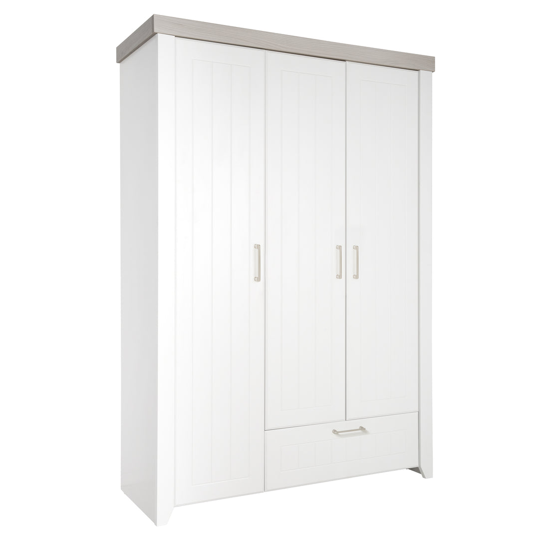 Kleiderschrank 'Wilma', 1 Schublade, 3 Drehtüren, Kindermöbel, Schrank in weiß / Luna Elm