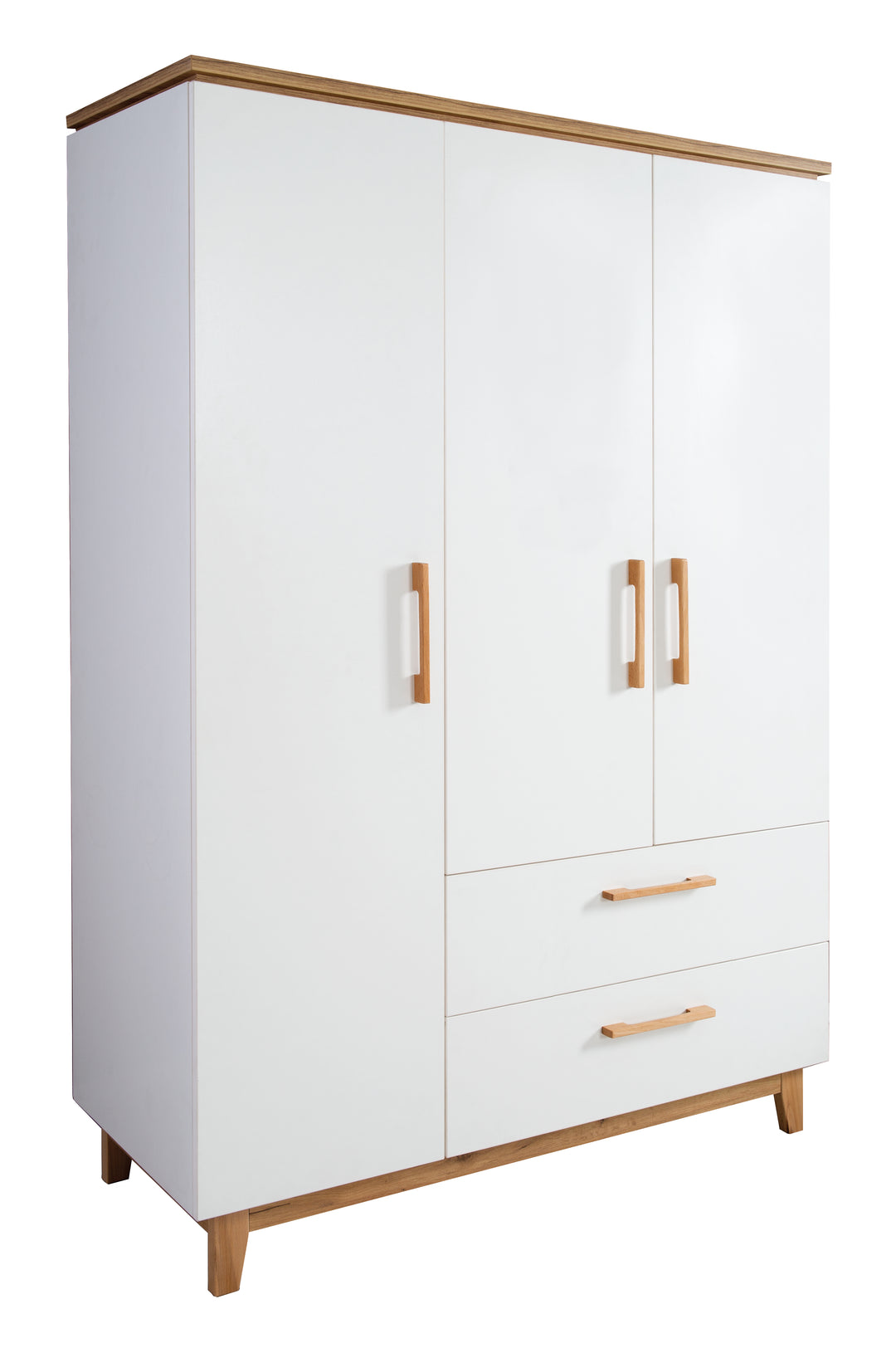 Kinderkleiderschrank 'Sidney' 3-türig - Füße und Griffe aus Massivholz - Cashmere / Dekor Eiche
