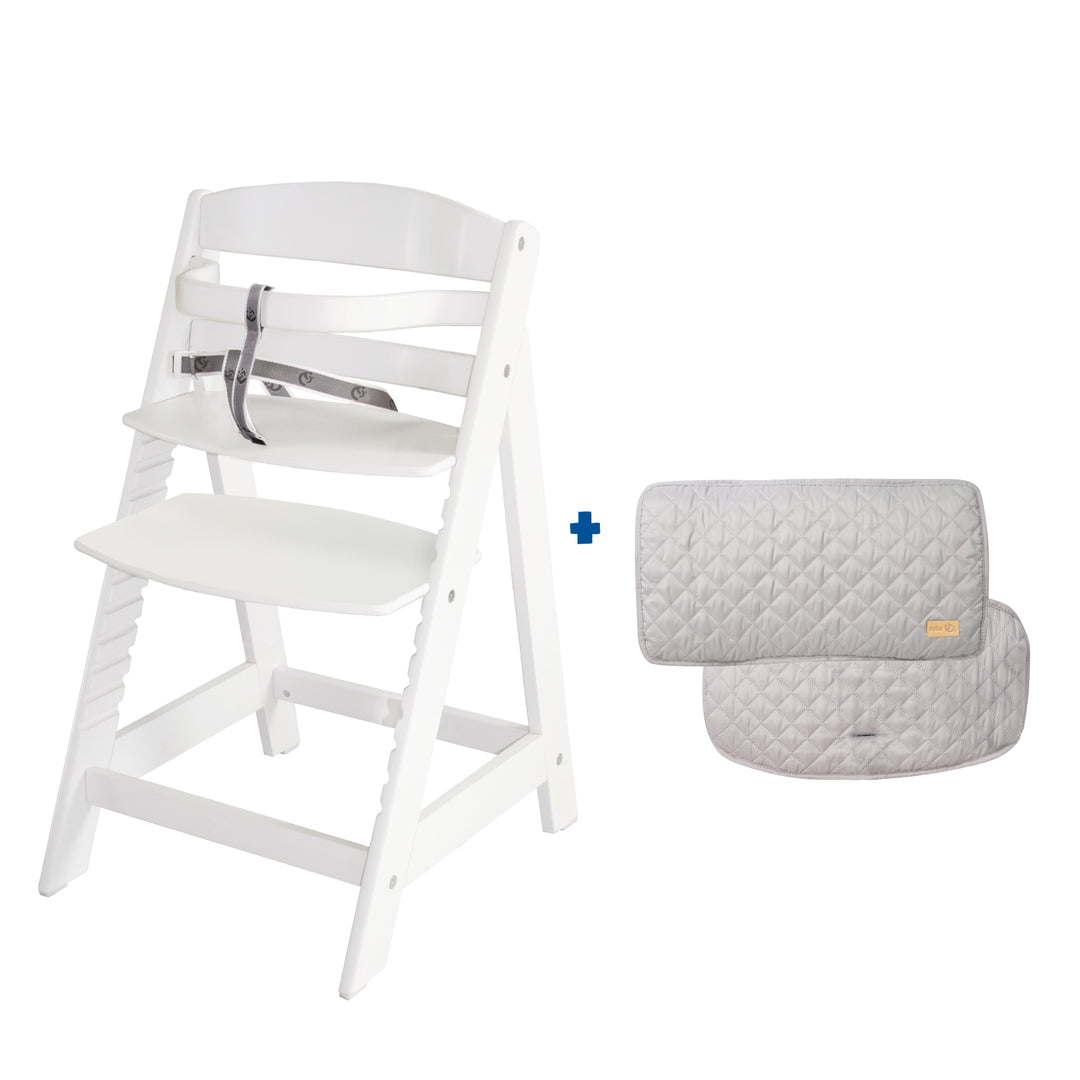 Nicht jedes Kind ist gleich. Daher gibt es verschiedene Möglichkeiten, den Hochstuhl entsprechend anzupassen. Beispielsweise führen wir Sitzverkleinerer mit unterschiedlichen Motiven und Ausführungen, falls Ihr Baby schon selbstständig sitzen kann, der Hochstuhl selbst jedoch zu groß ist. Diese bestehen entweder einteilig aus Rücken- und Sitzkissenteil oder zweiteilig aus einer Hochstuhleinlage für den Rücken und einem weichen Sitzkissen.