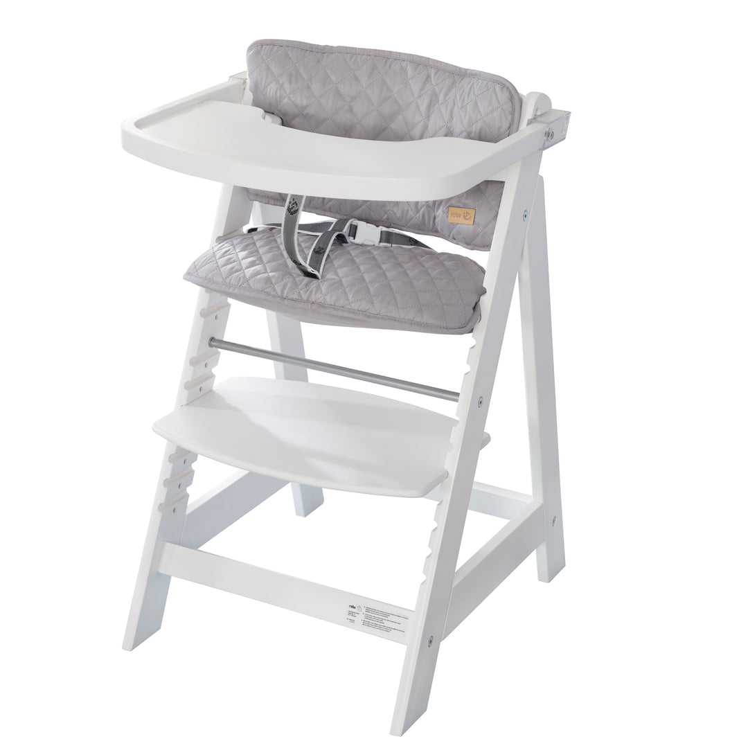 Denken Sie an die Zukunft: Mit Treppenhochstühlen haben Sie und Ihr kleiner Liebling über Jahre hinweg Freude an dem neuen Möbelstück und beteiligen sich gleichzeitig aktiv am Umweltschutz, da wichtige Ressourcen geschont werden. Bei einem guten Hochstuhl sind weder spitze Kanten noch Ecken vorhanden. Zudem dürfen Schrauben auf keinen Fall herausstehen. Zudem sollten Modelle aus Holz lasiert oder lackiert sein, damit die Gefahr von Verletzungen durch Splitter reduziert wird. Ein höheres Eigengewicht mindert das Risiko, dass Ihr kleiner Schatz beim Herumzappeln umkippt. Alle roba Modelle sind aus diesem Grund nach der aktuellen europäischen Sicherheitsnorm konzipiert und werden während der Produktion regelmäßig auf Unbedenklichkeit getestet