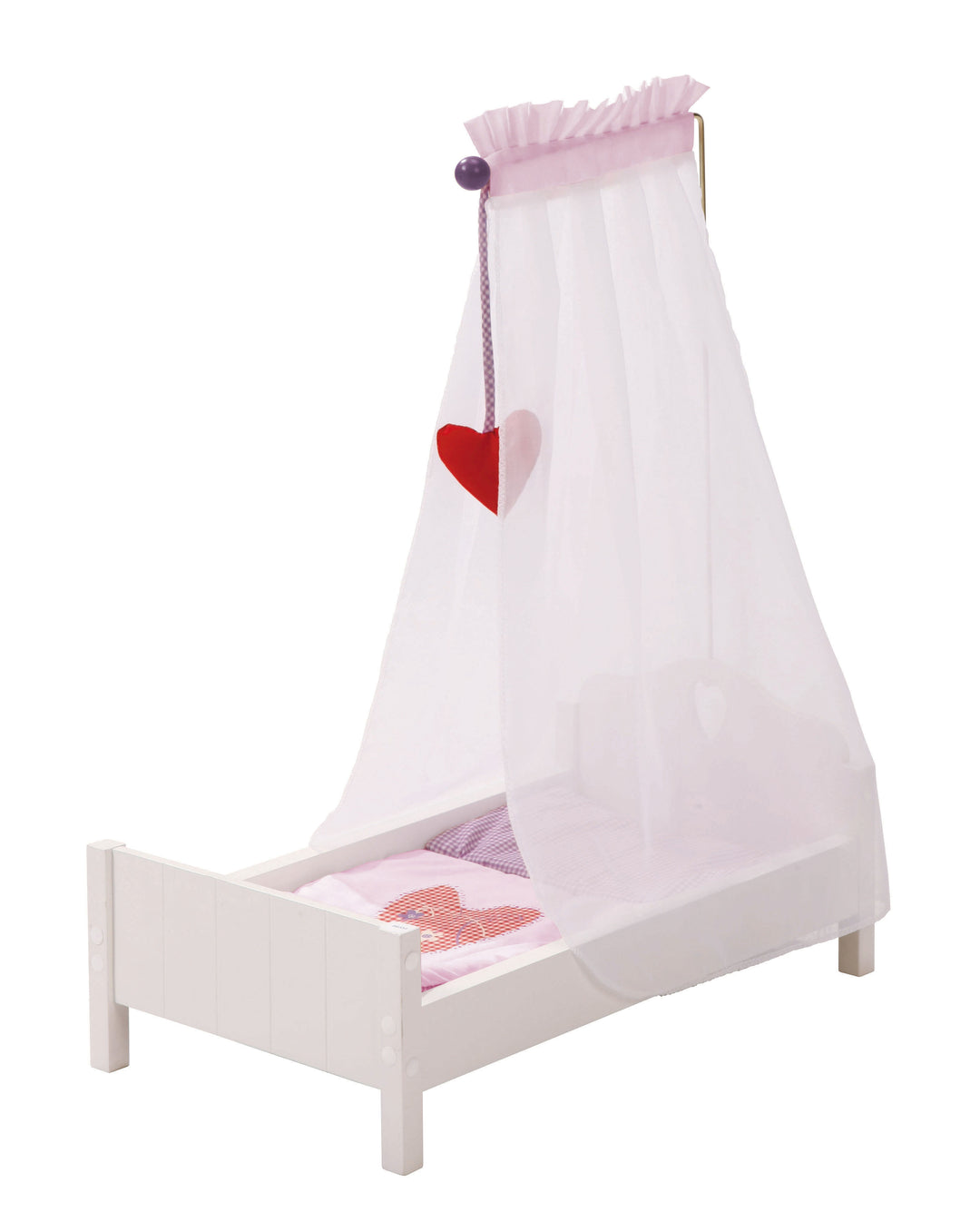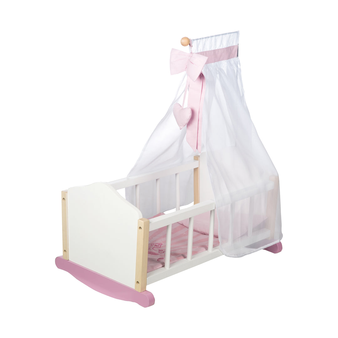 Puppenbett Serie 'Happy Fee', Holz natur inkl. textiler Ausstattung, Bettwäsche & Himmel pink