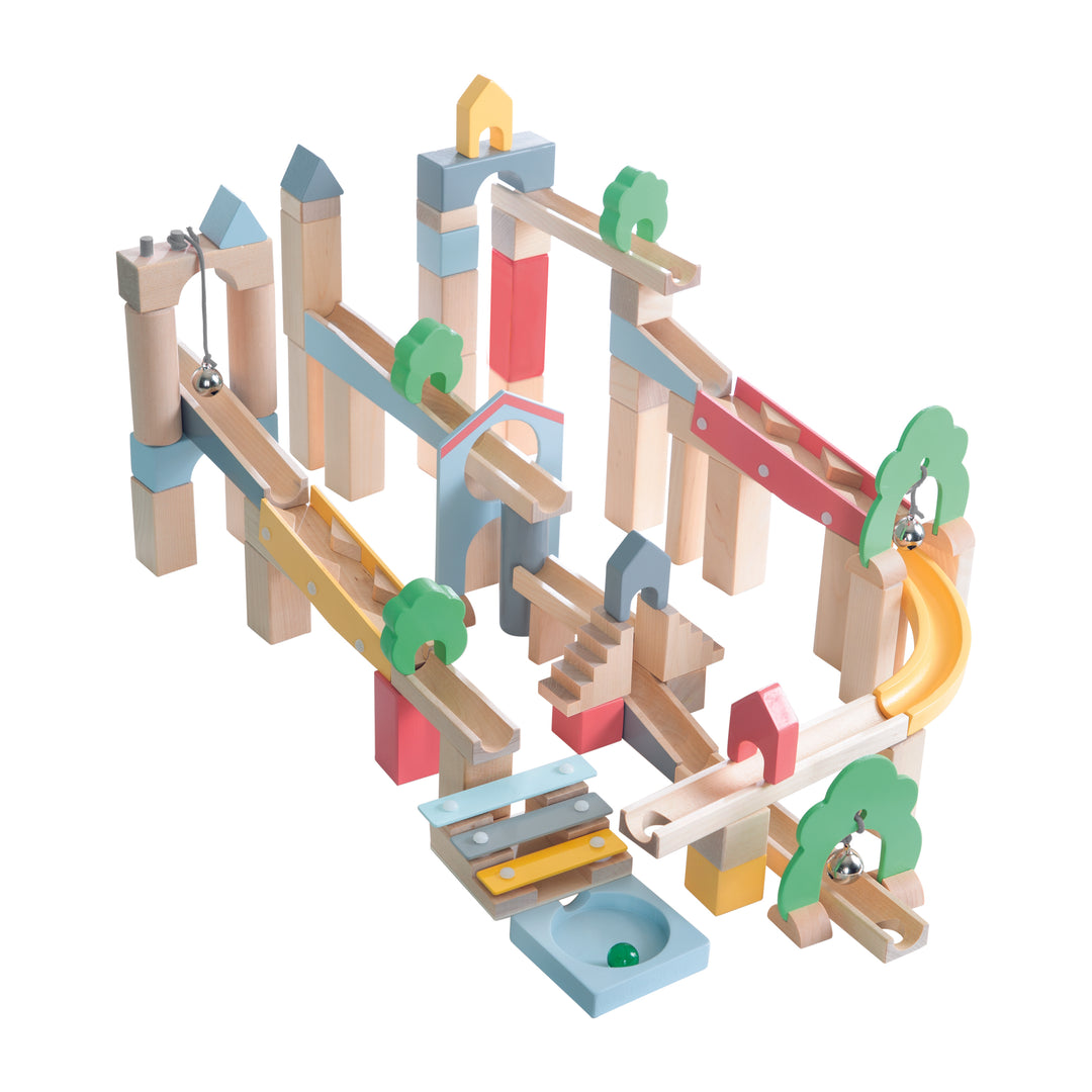 Marble Run Made of Wood 60 Pieces Including 20-Piece Expansion Set for Landscape Construction