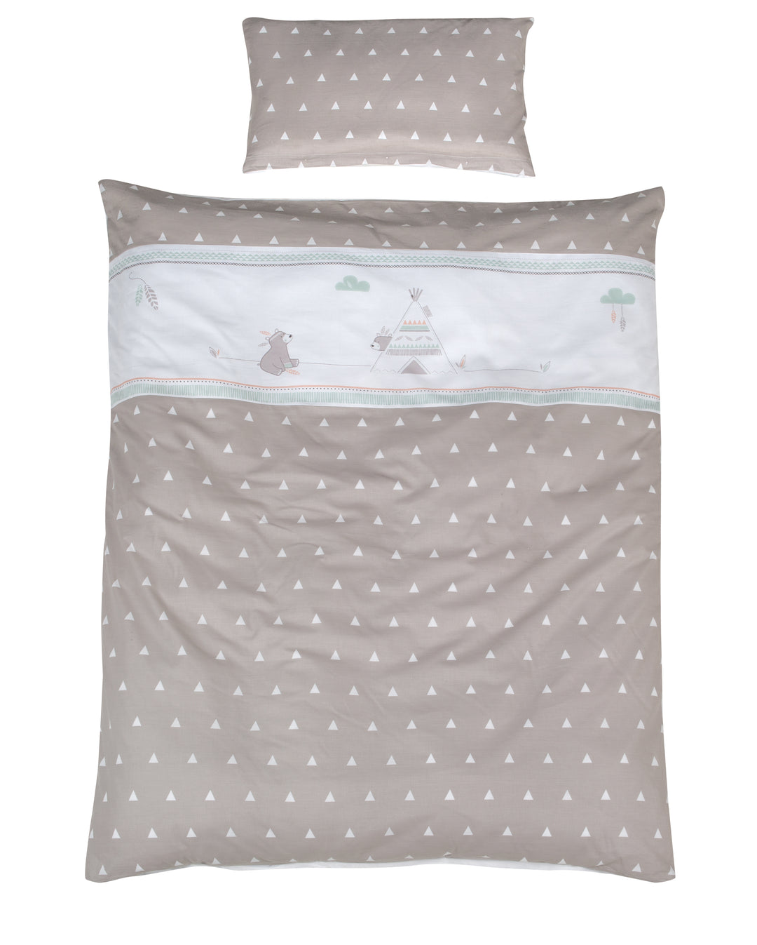 Bed Linen 'Indibear', 2-Piece, 100 x 135 cm, 100% Cotton, Duvet & Pillow Cover with Appliqué