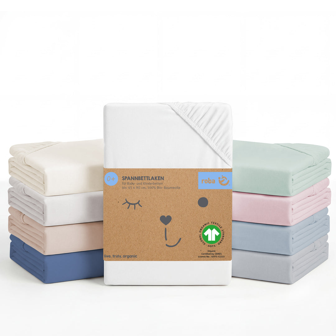 Fitted Sheet 'safe asleep®', Single Jersey, 100% Cotton, Canadian White