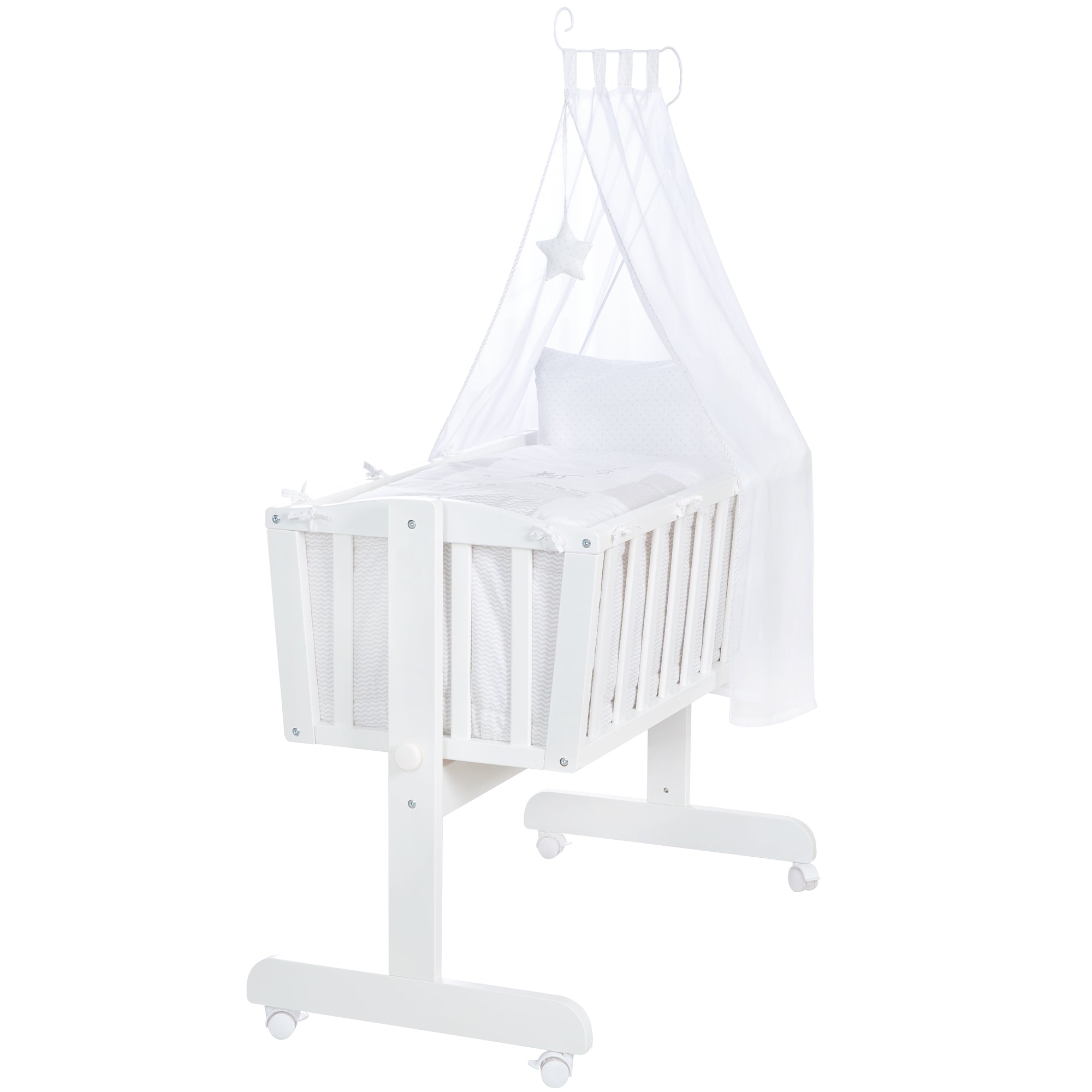 Babies have a great need for cuddling and love to be cozy, soft, and warm. In this high-quality children's bedding set, your little darling will feel right at home. The bumper provides your baby with cuddly nest warmth. With the matching canopy, your child will feel lovingly cared for from the very first weeks.