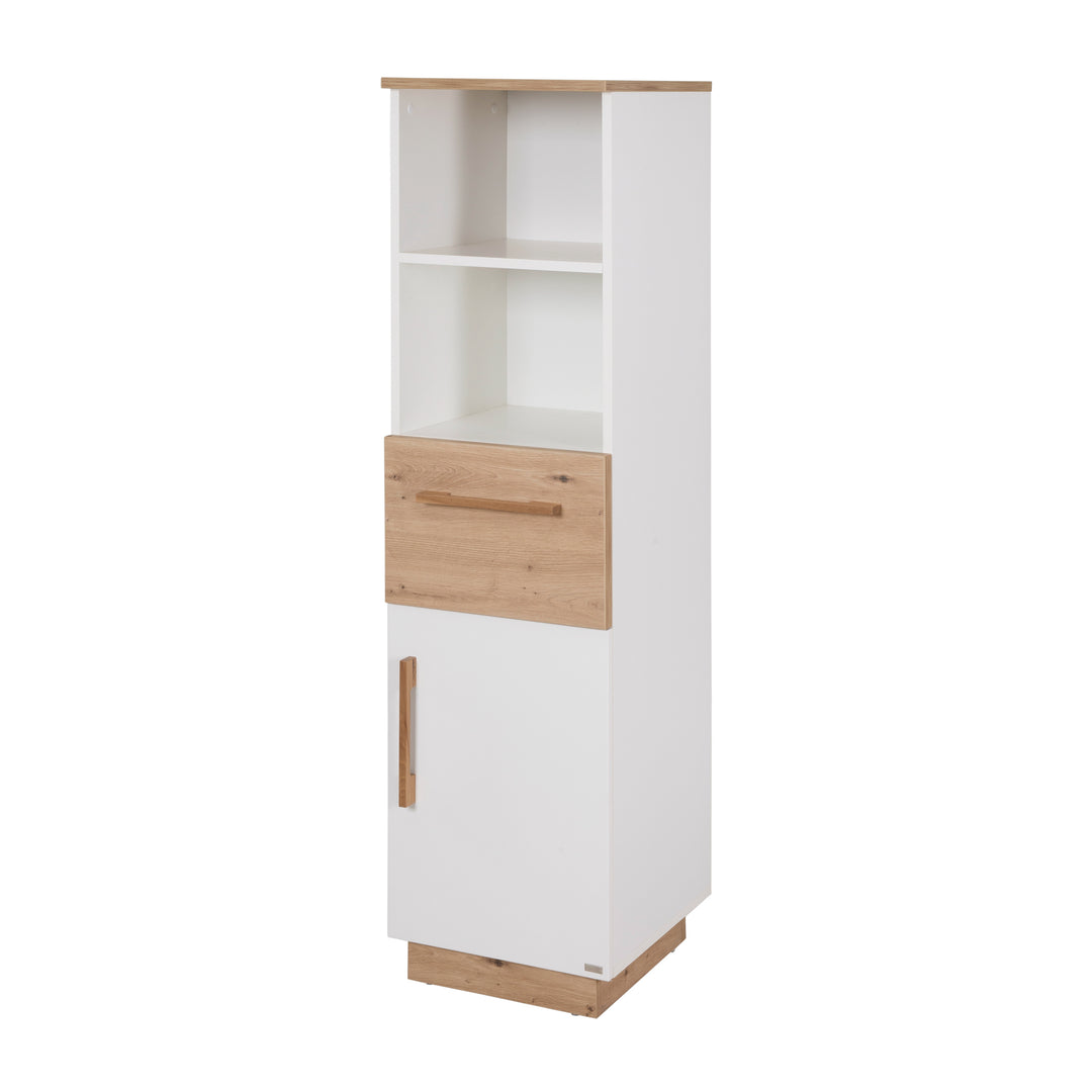 Standing Shelf 'Lenn' - with 2 Open Compartments - Anthracite Body - Decorative Door in 'Artisan Oak' Decor
