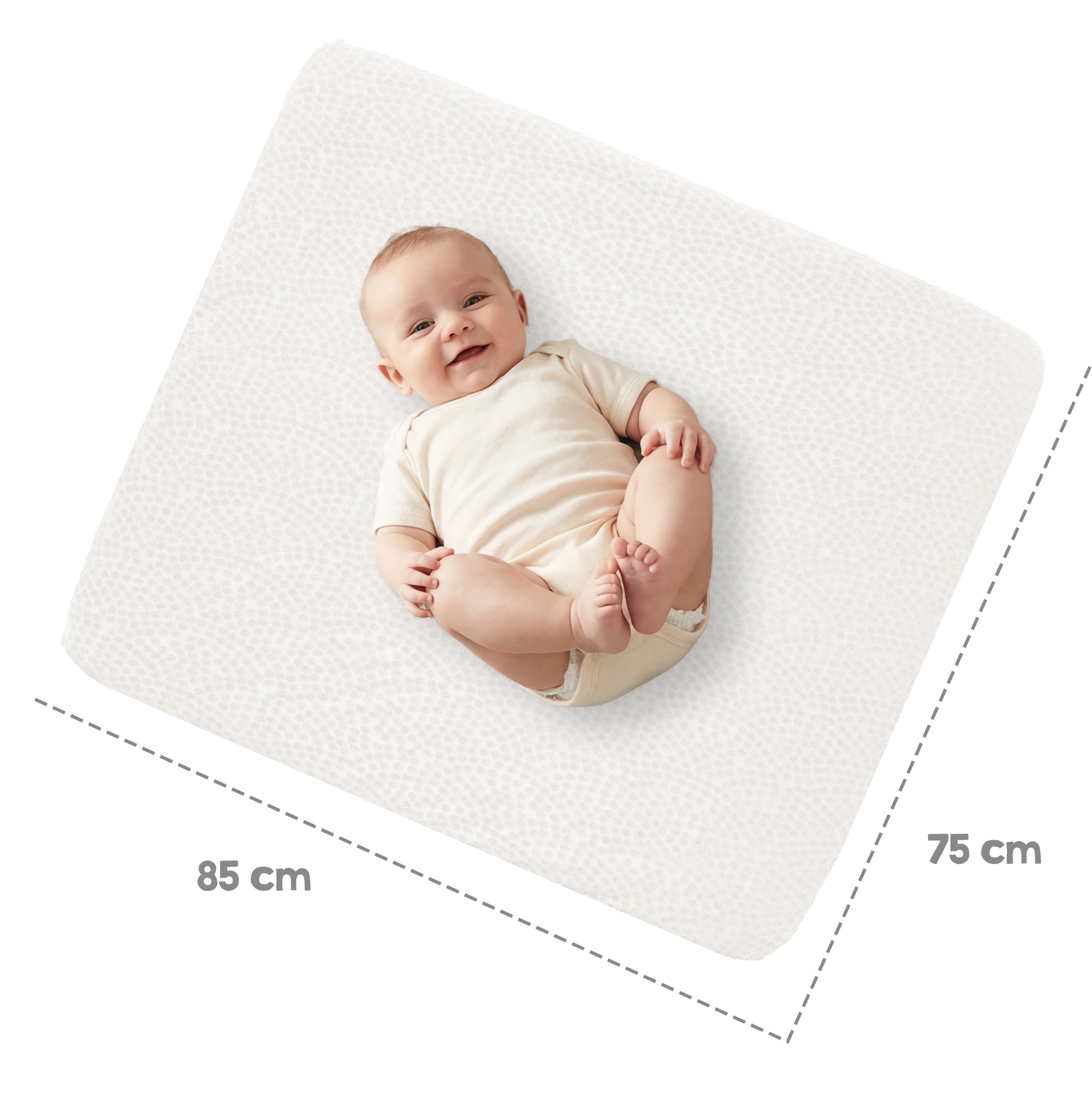 FITTED COVER FOR CHANGING PADS: Soft cover for changing pads - Suitable for pad size 85 x 75 cm - Beautiful protective cover for the changing mat in the new Seashells design - Color: Oyster / White.