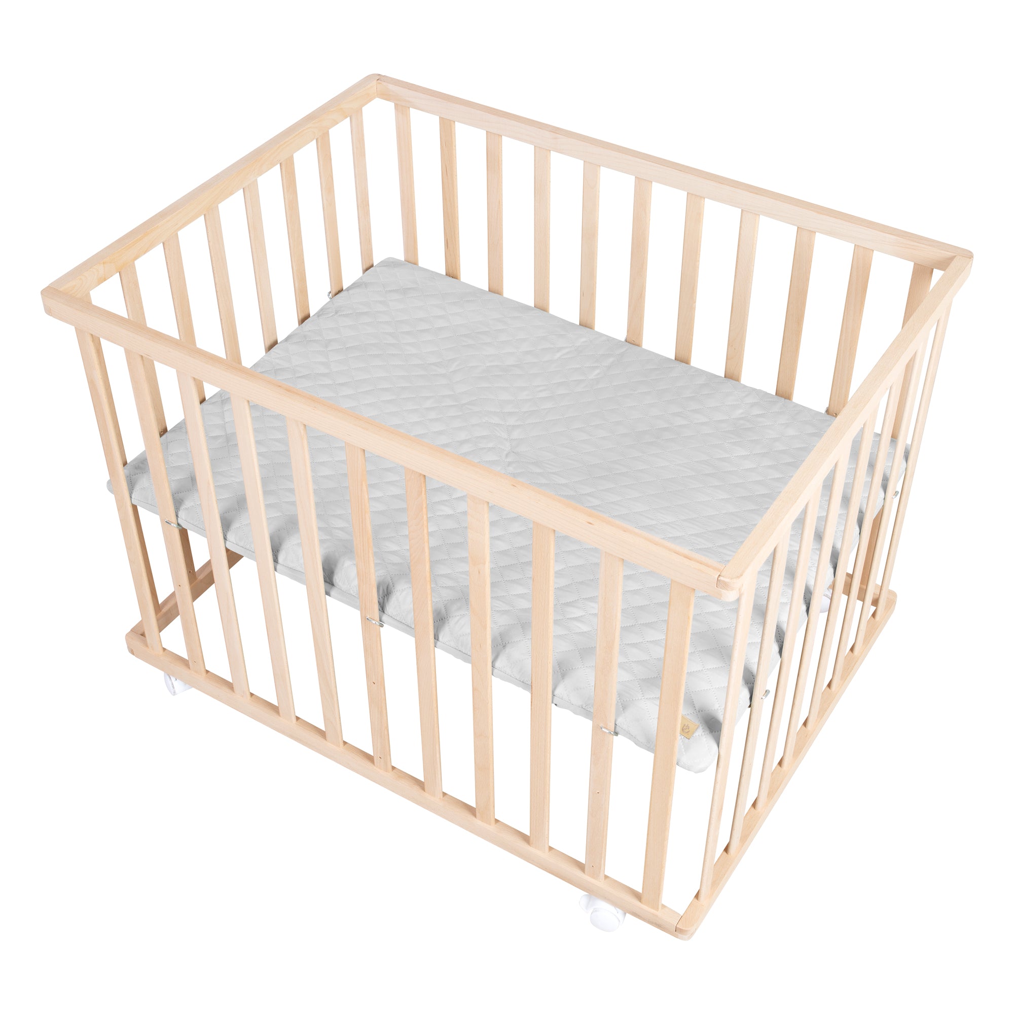 Parque 'Jumbotwins', 75 x 100 cm, incluye almohadilla protectora y ruedas, madera natural