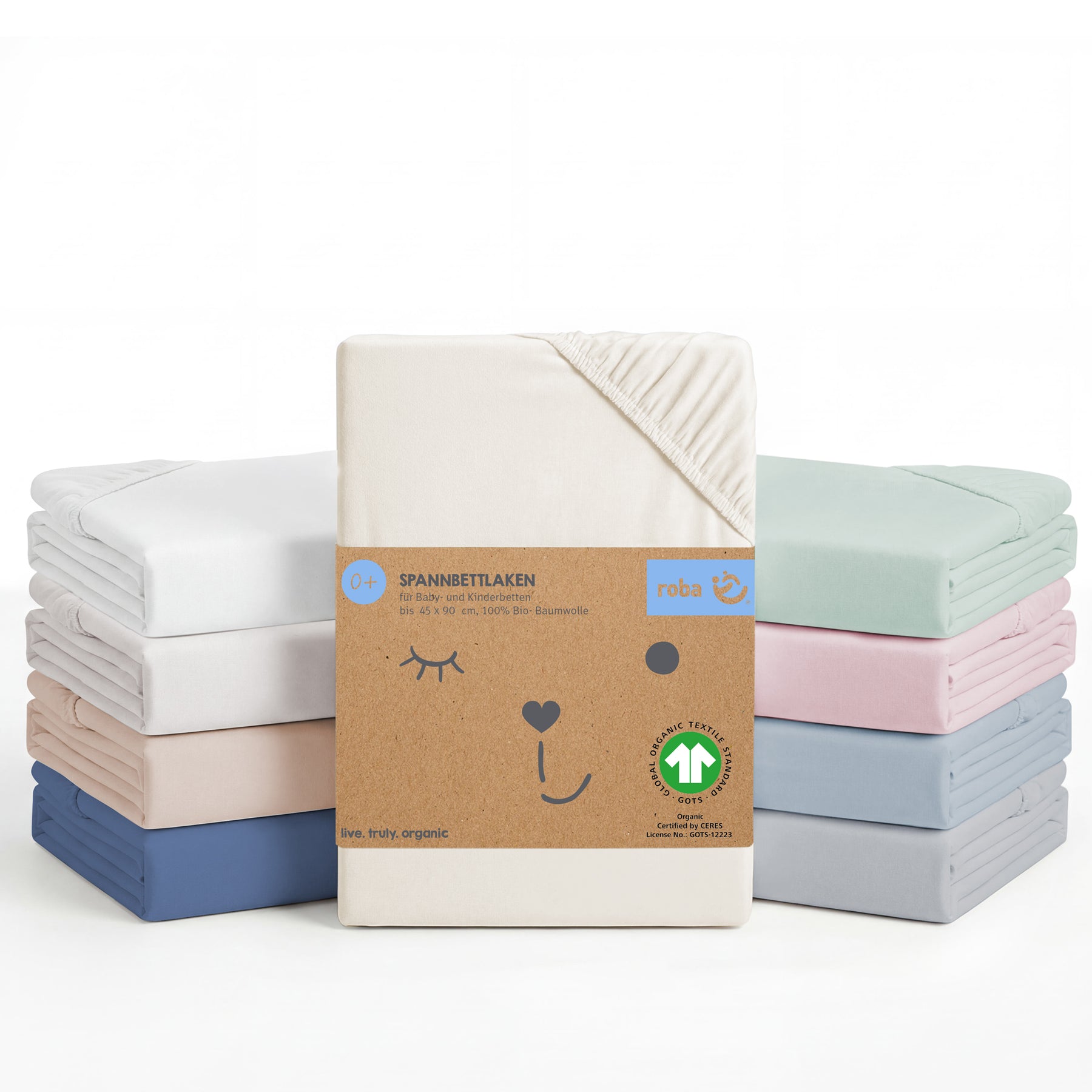 La sábana ajustable de roba, hecha de jersey de algodón 100% amigable con la piel, es adecuada para colchones de bebé de tamaños 40 x 90 - 45 x 90 cm así como 60 x 120 - 70 x 140 cm.