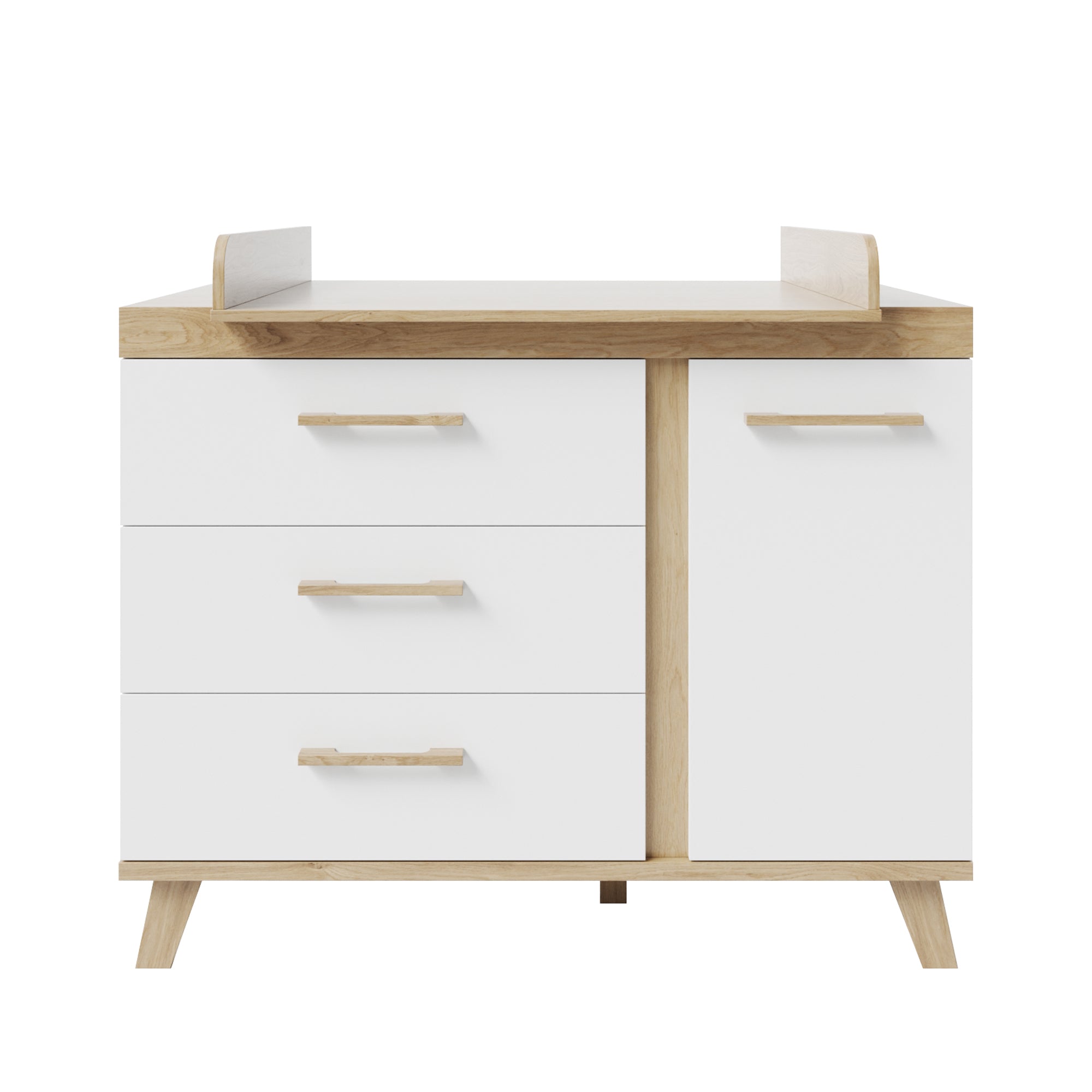 Cuna combinada 'Smile' 70x140 - Ajustable en altura - Patas de roble macizo - Blanco