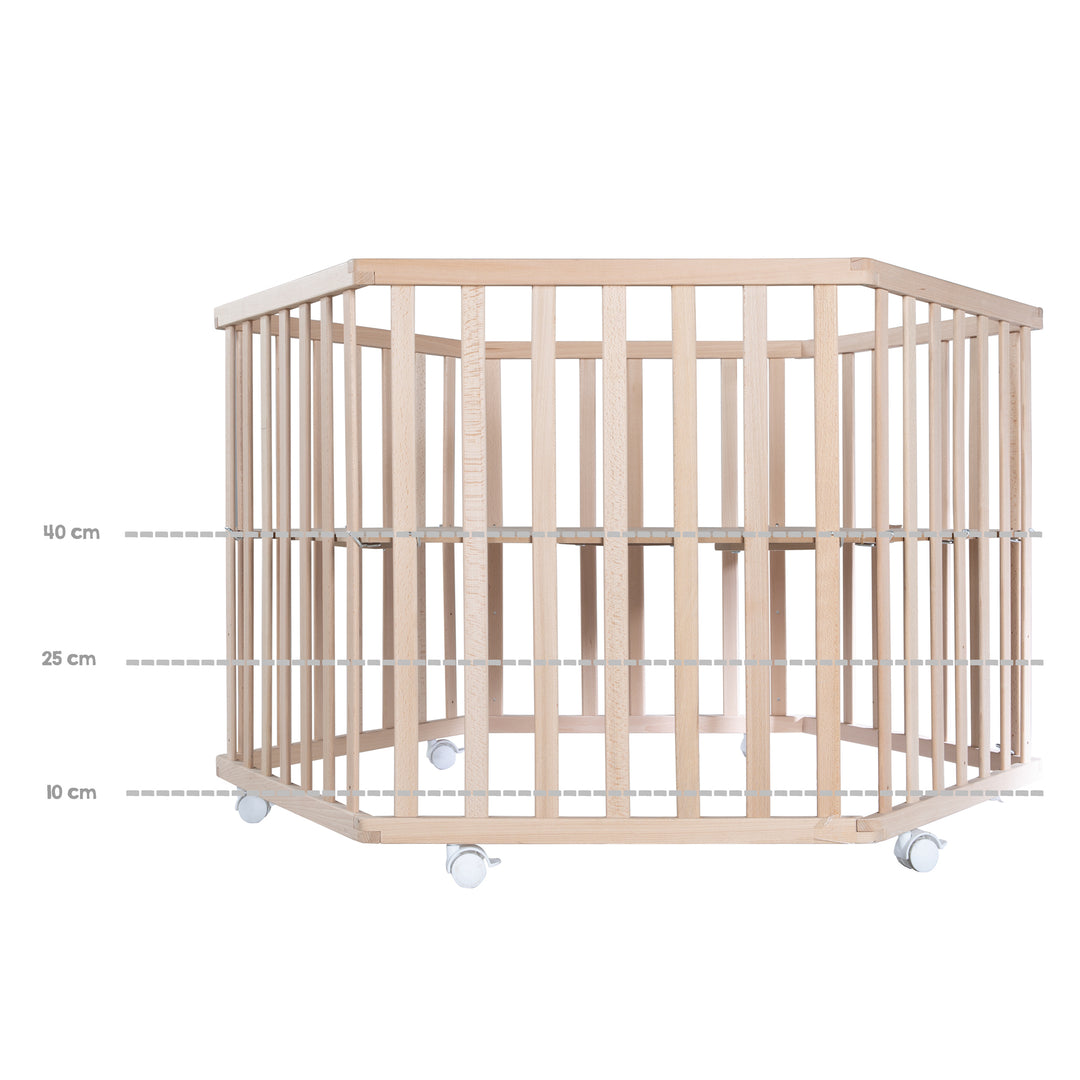 Parque 'Jumbotwins', hexagonal, incluye almohadilla protectora y ruedas, madera natural
