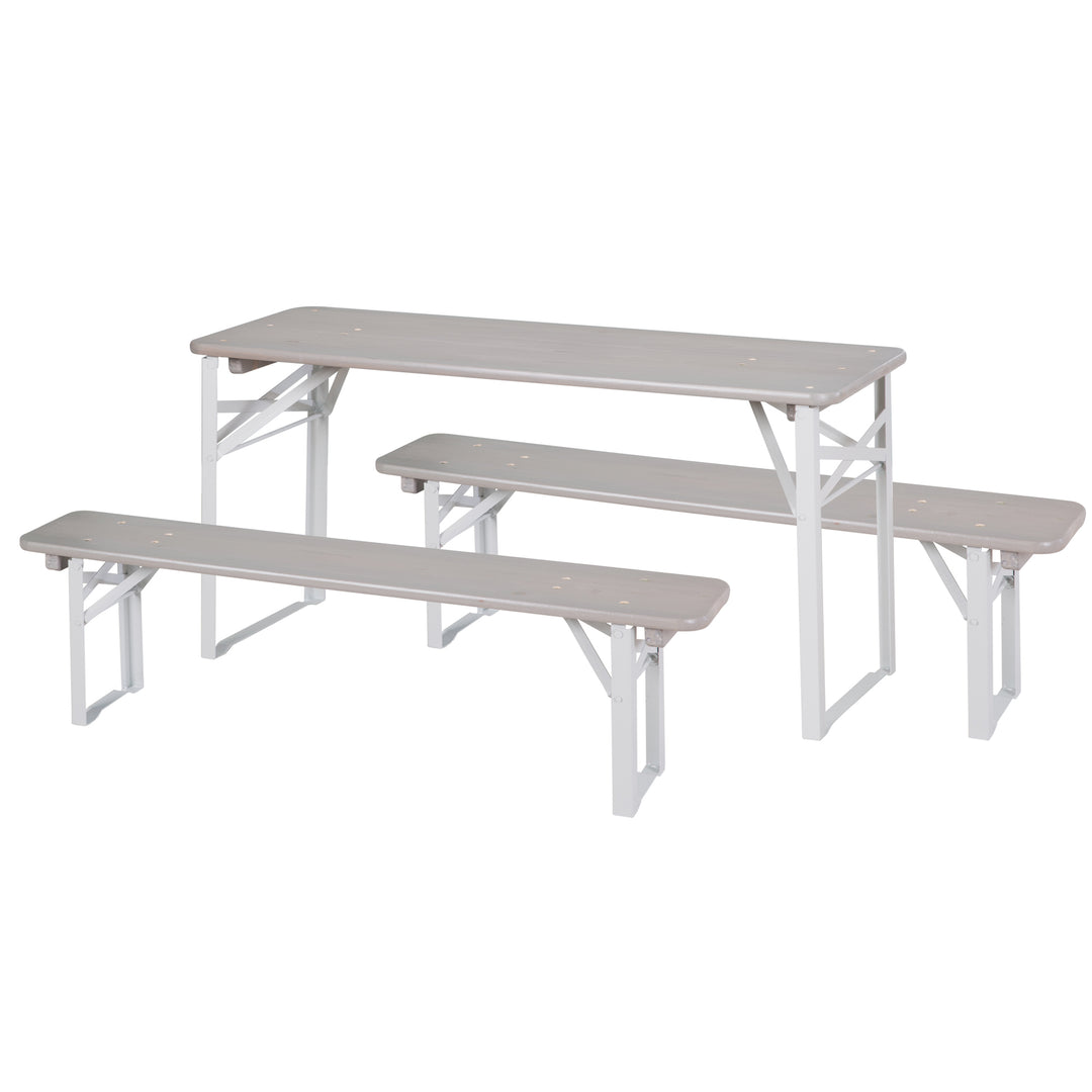 Conjunto de fiesta para exterior de madera - 2 bancos + 1 mesa para niños - Gris lacado