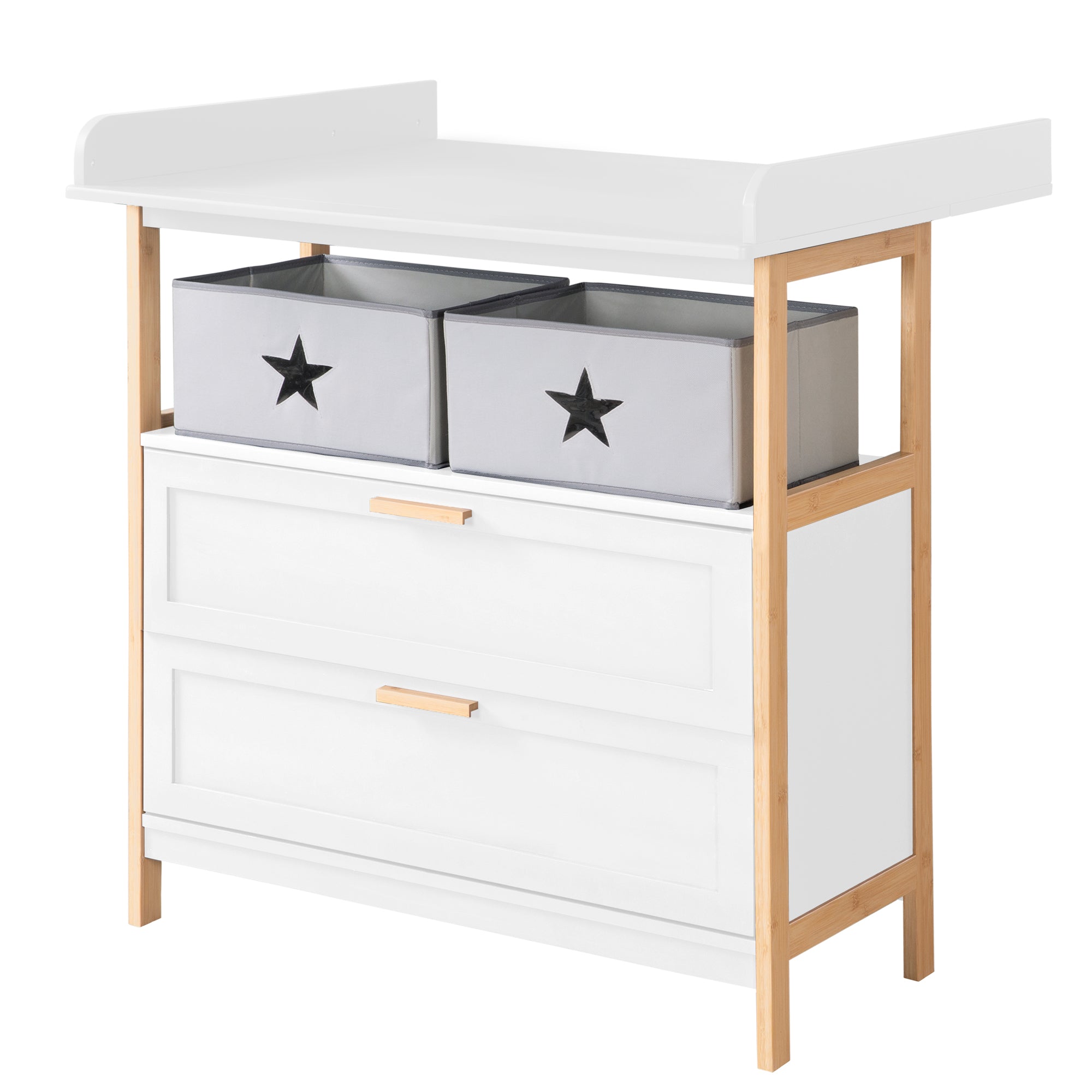 Cómoda para cambiar pañales 'Lilo' con cajones, puerta, compartimento abierto - Blanco