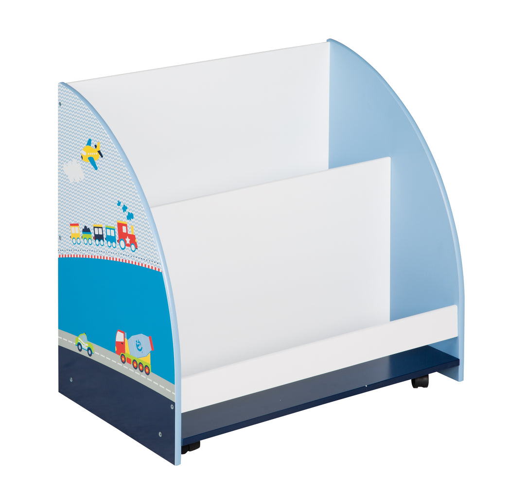 Estantería infantil 'Corredor', estante de juego móvil y giratorio con ruedas, azul