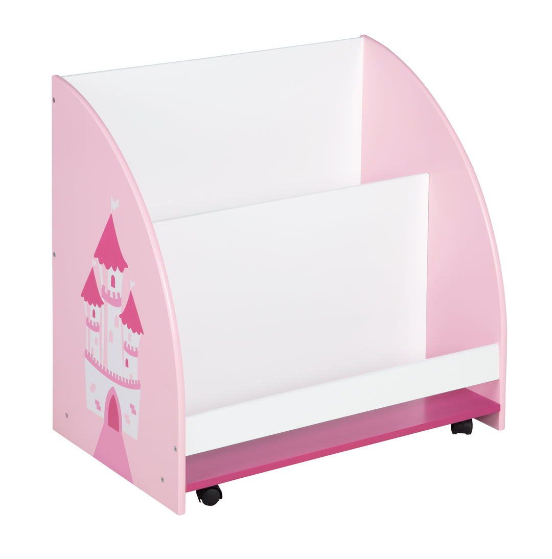 Estantería infantil 'Corona', estante de juego móvil y giratorio con ruedas, rosa/blanco
