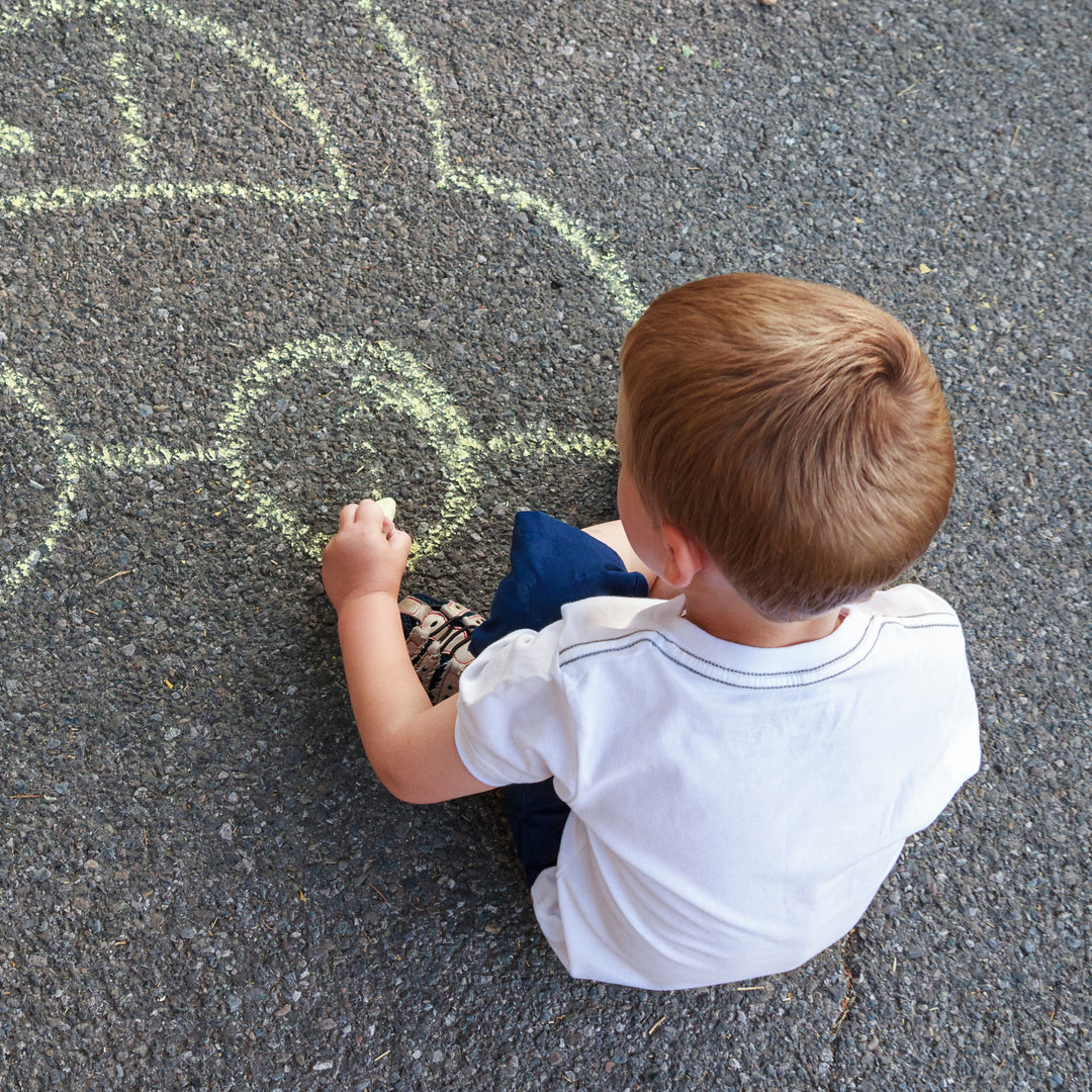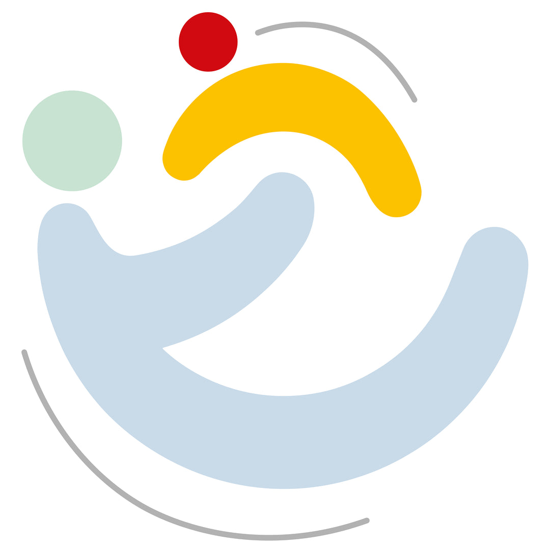 El niño en un cálido tono naranja representa bienestar/cuidado y refuerza la amabilidad del trazo curvo opuesto.