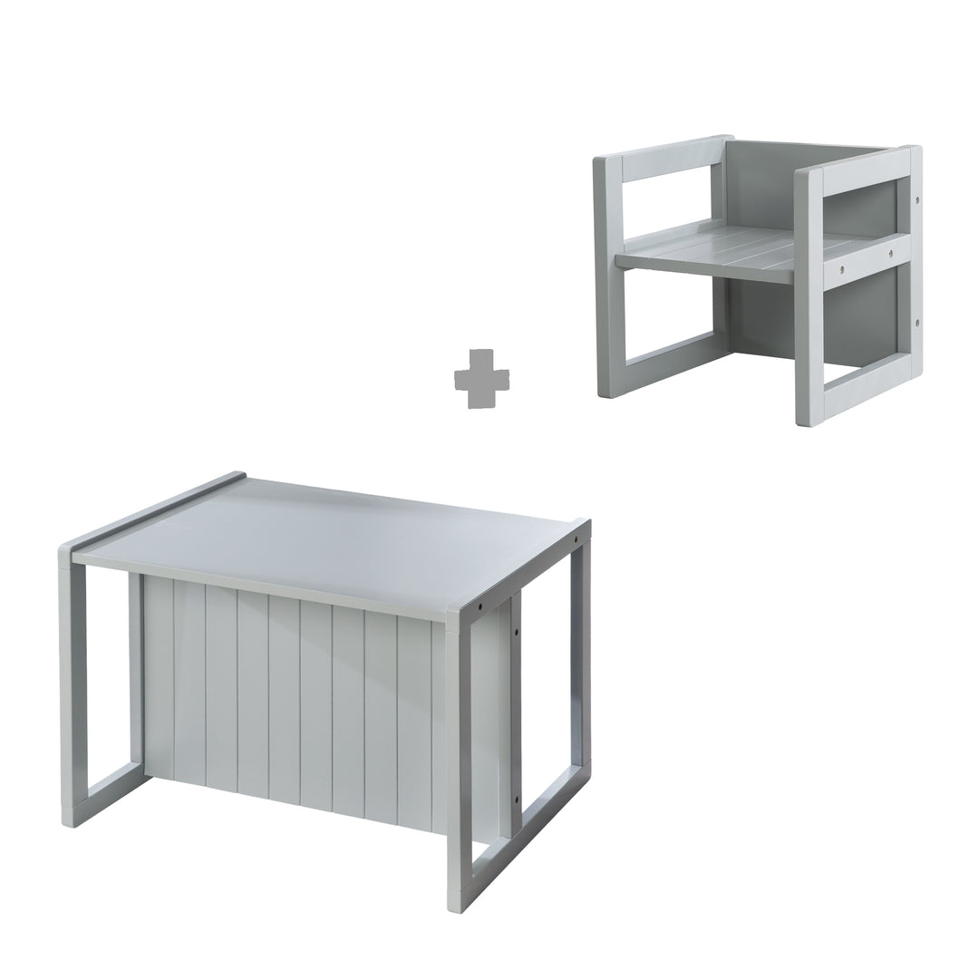 Ensemble de sièges 'Rock Star Baby 3', 2 chaises et un table pour enfant, en bois, gris foncé laqué