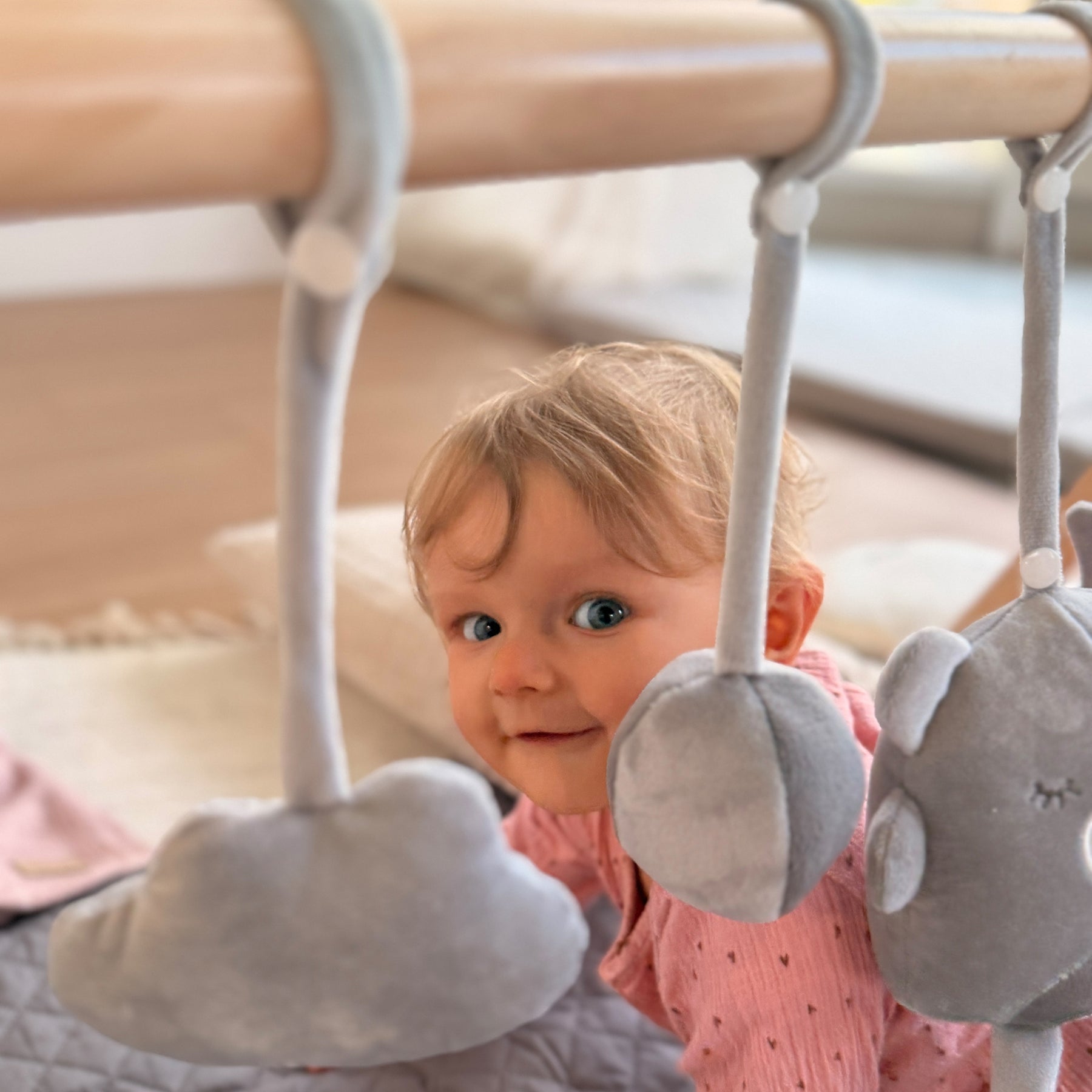 PORTIQUE MONTESSORI DÈS LA NAISSANCE : Favorise le développement précoce dès la naissance – Stimule les réflexes de préhension, la coordination et la motricité selon Montessori – Idéal pour les nouveau-nés et les tout-petits.