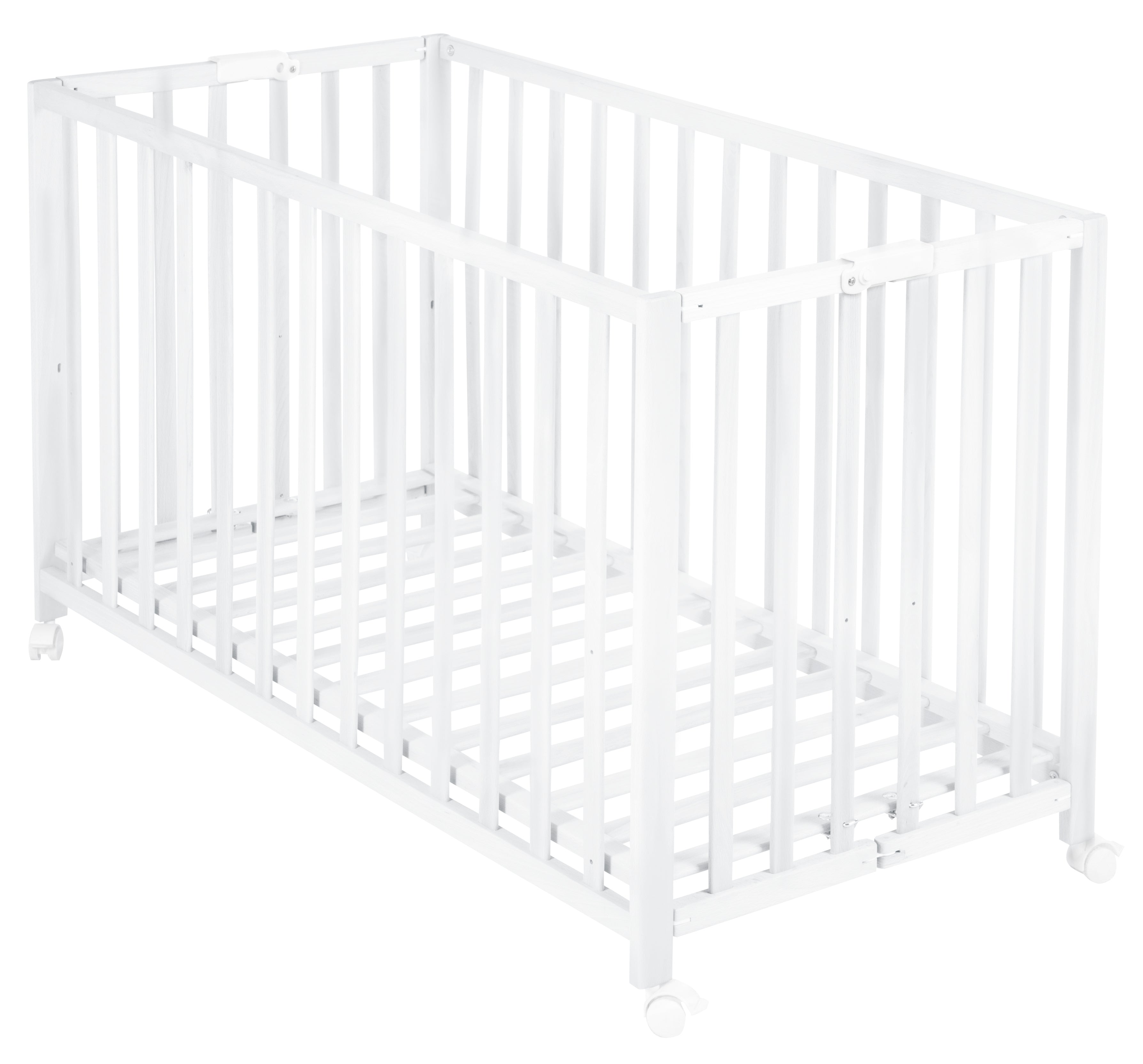 Le lit est durablement fait et a des tiges plates latérales. Le lit blanc pour bébé a été testé pour des substances nocives et facile à installer.