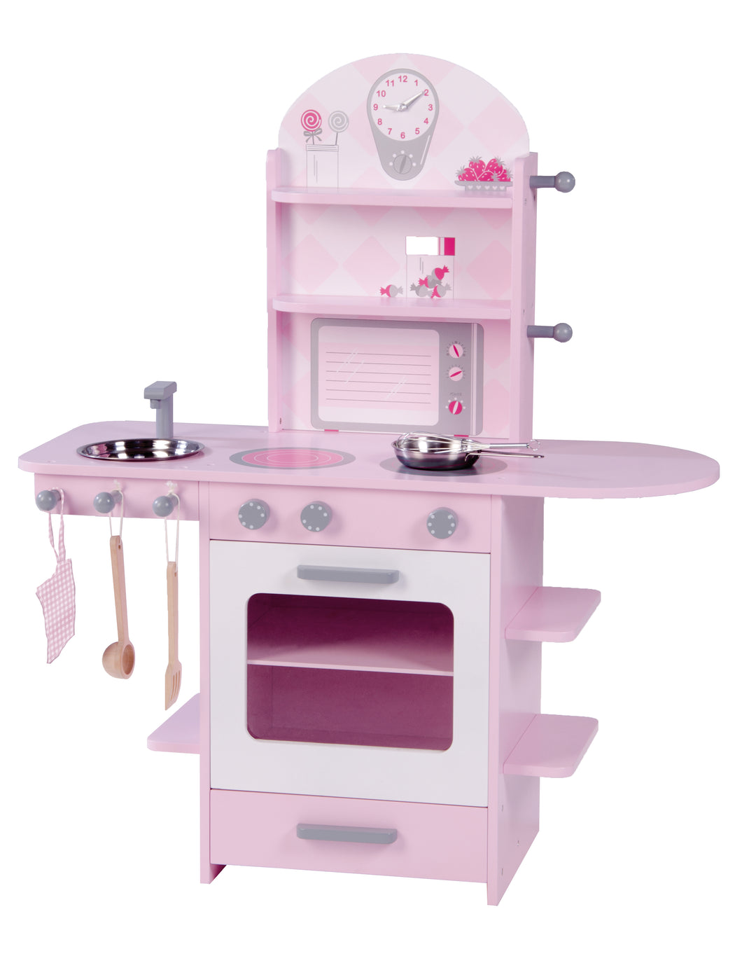 Cuisine de jeu, rose, pour enfant avec cuisinière, évier, robinet et étagère incl. accessoires