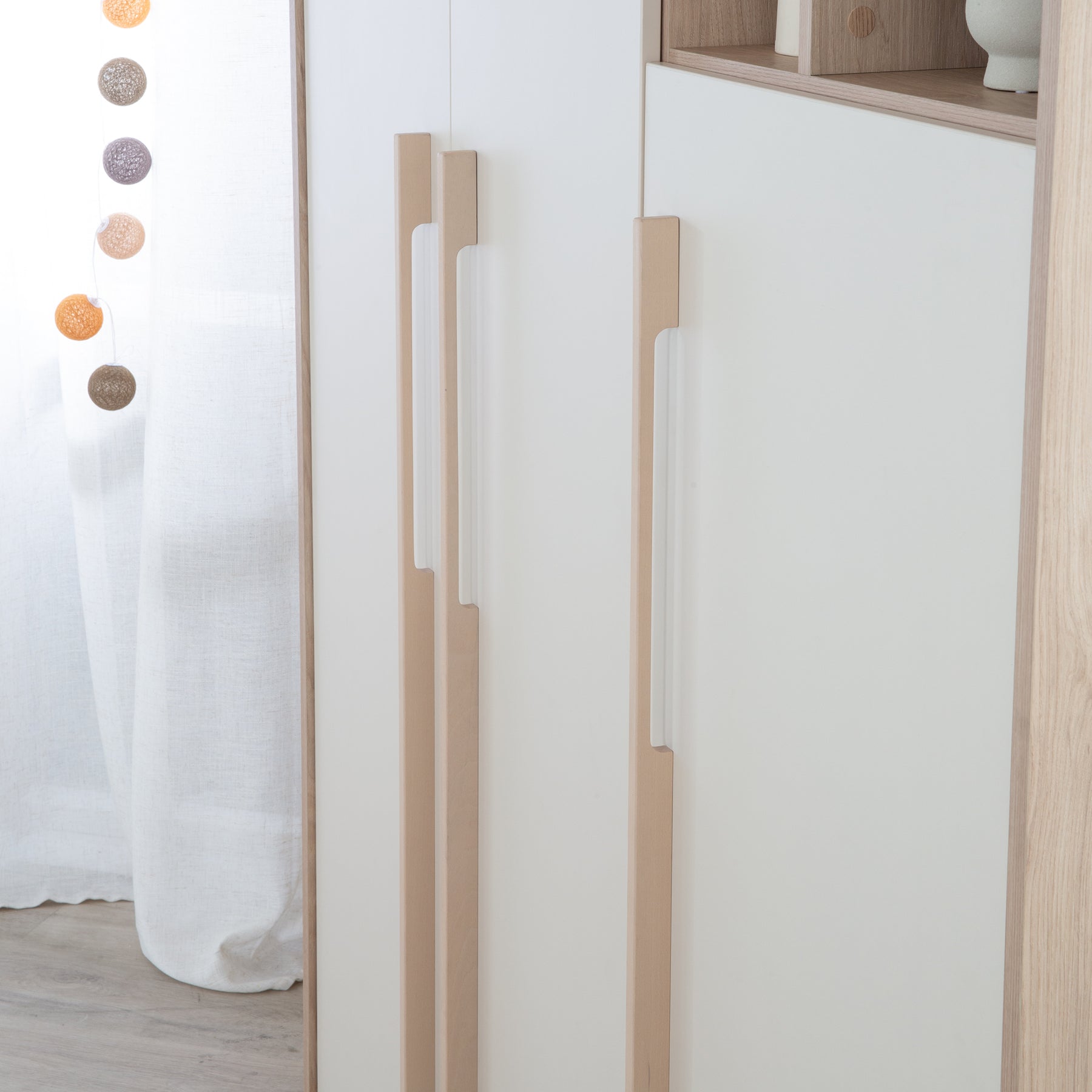 🪵 Design moderne en coloris cachemire avec décor bois Virginia Chestnut et poignées en hêtre massif – fabriqué dans l’UE et testé selon les normes de sécurité européennes