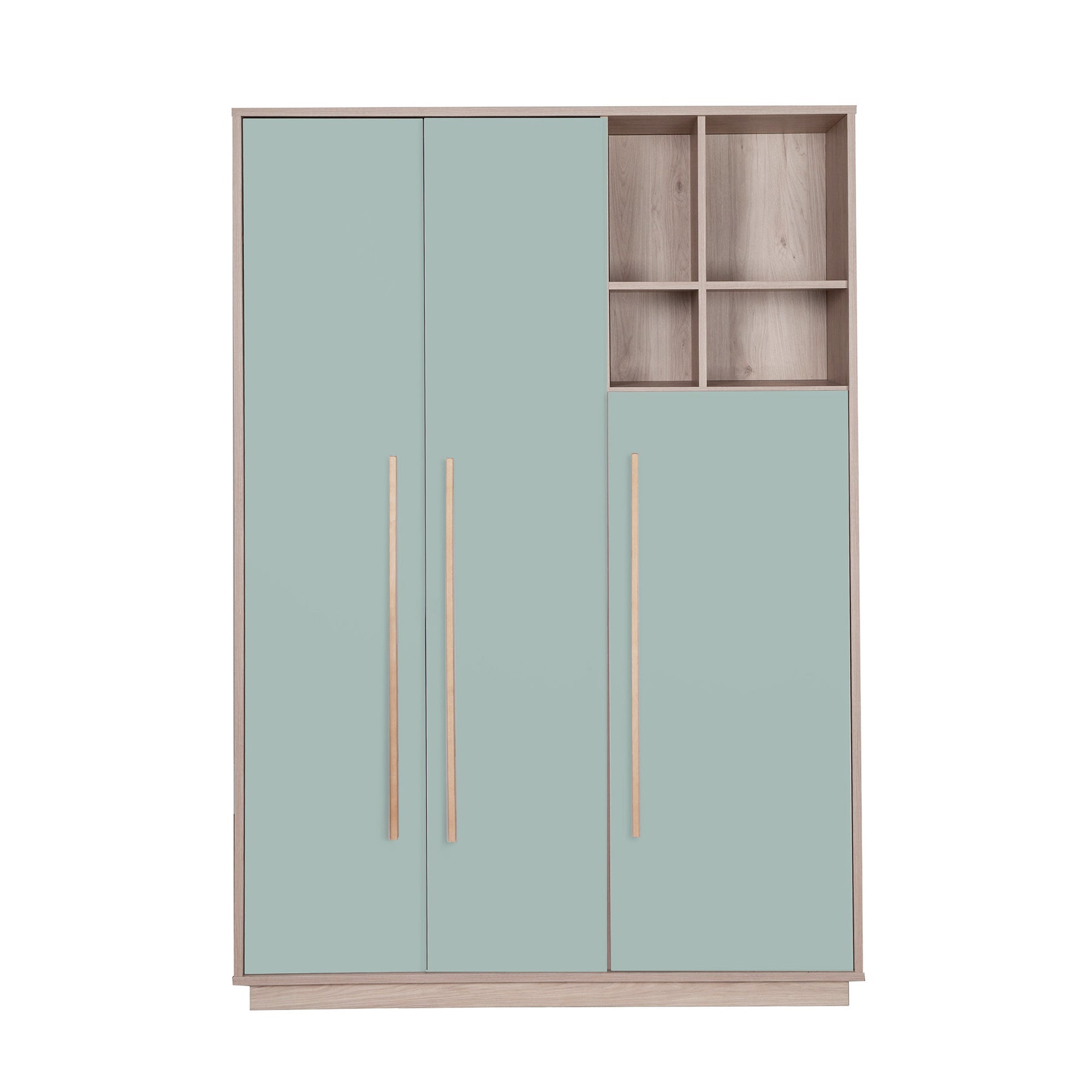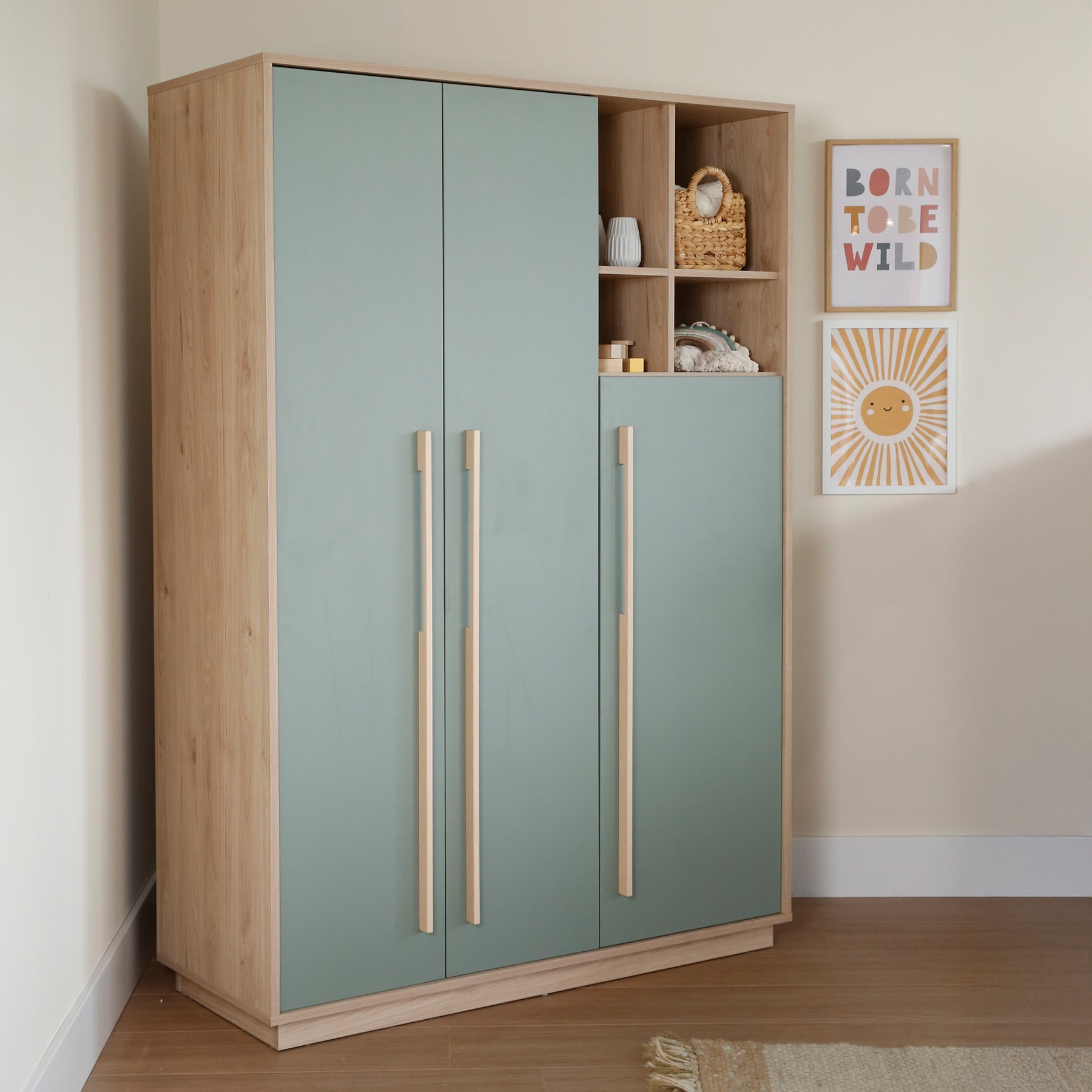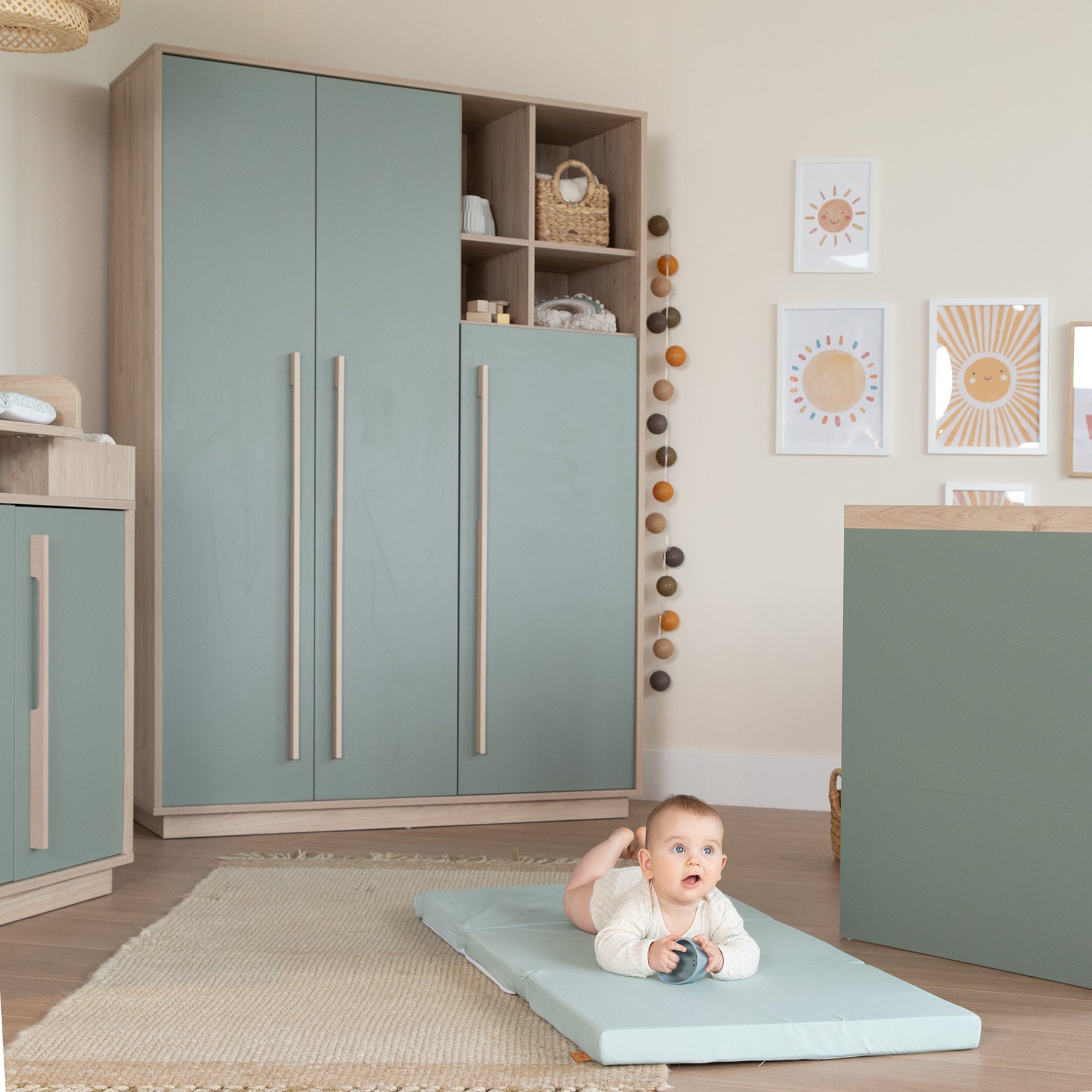 Chambre bébé 'Selva' 3 pc – Étagères ouvertes & Fermeture Soft-Close – Vert Reed / Noyer Virginia