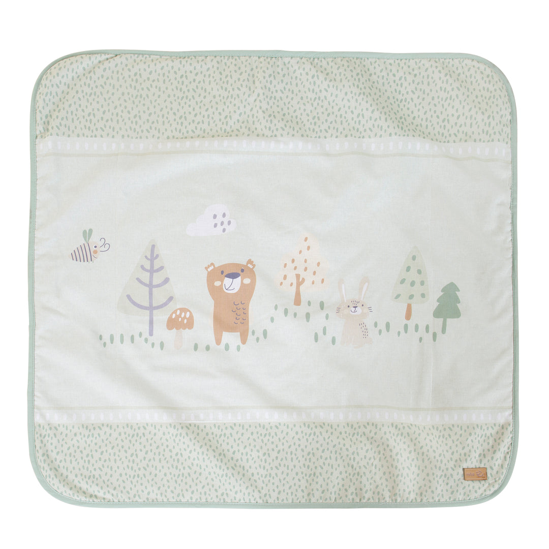 Couverture bébé 'Woodland Buddies' 80 x 80 cm - Double face - Vert pastel / Gris argenté