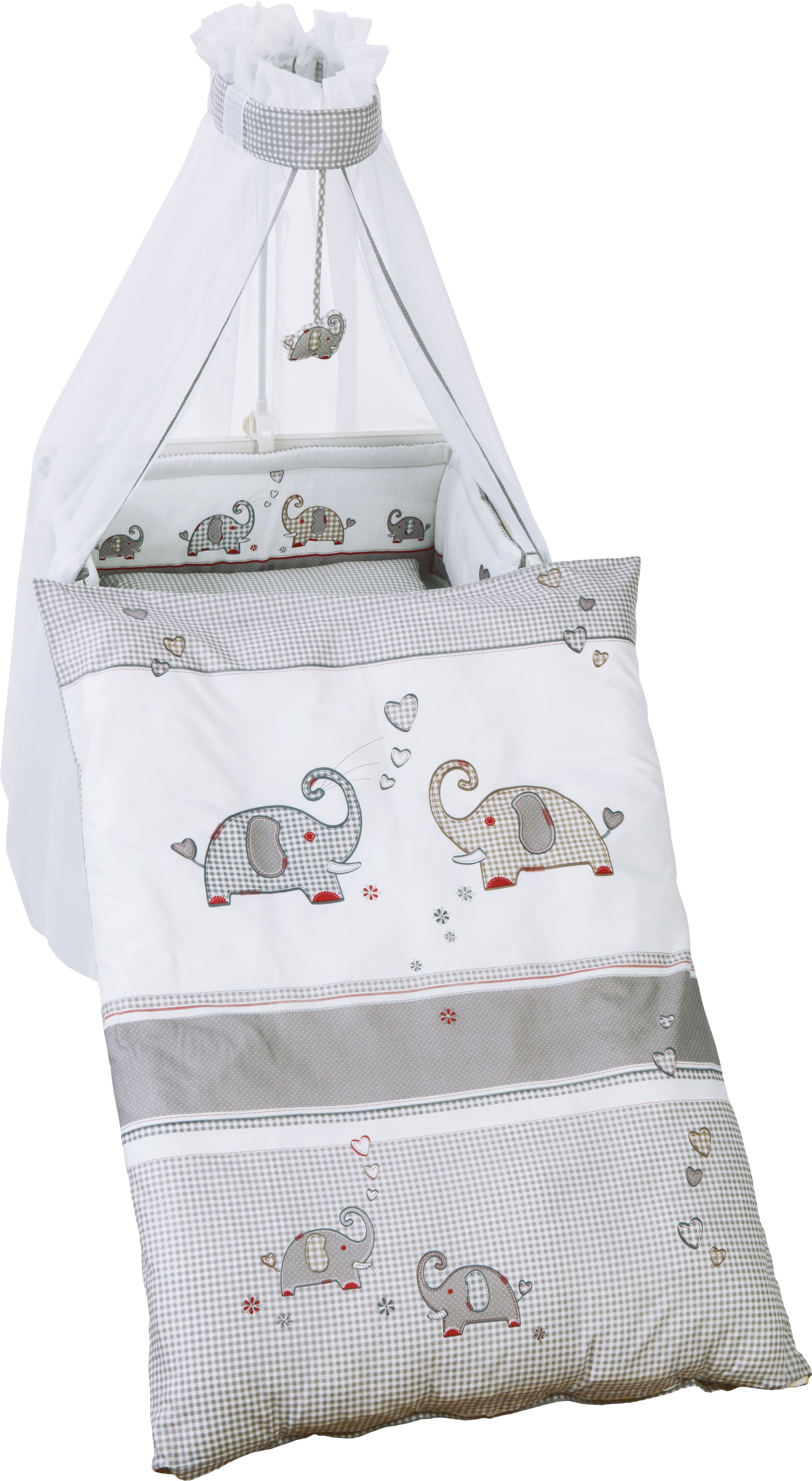 Linge de lit bébé 'Indibaer', 2 pièces, 100 x 135 cm, 100 % coton, duvet et taie d'oreiller avec des patchs élaborés