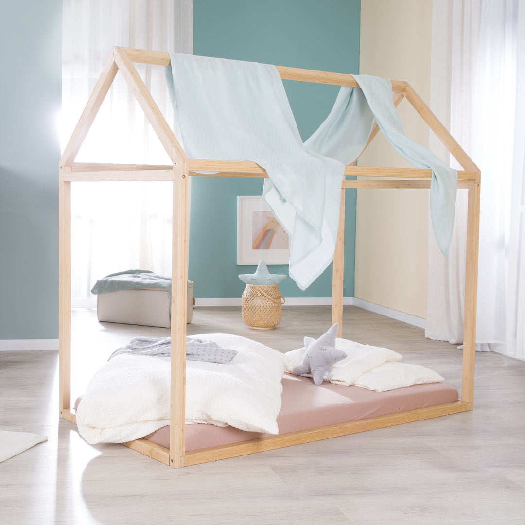 Lit de maison 70 x 140 cm - Lit Montessori en bois de bambou - Certifié FSC