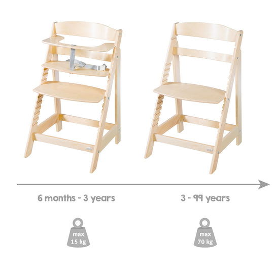La chaise haute 'Sit Up Flex' nature de roba est une chaise d'escalier sûre et flexible qui grandit avec l'enfant et garantit une utilisation pendant de nombreuses années.