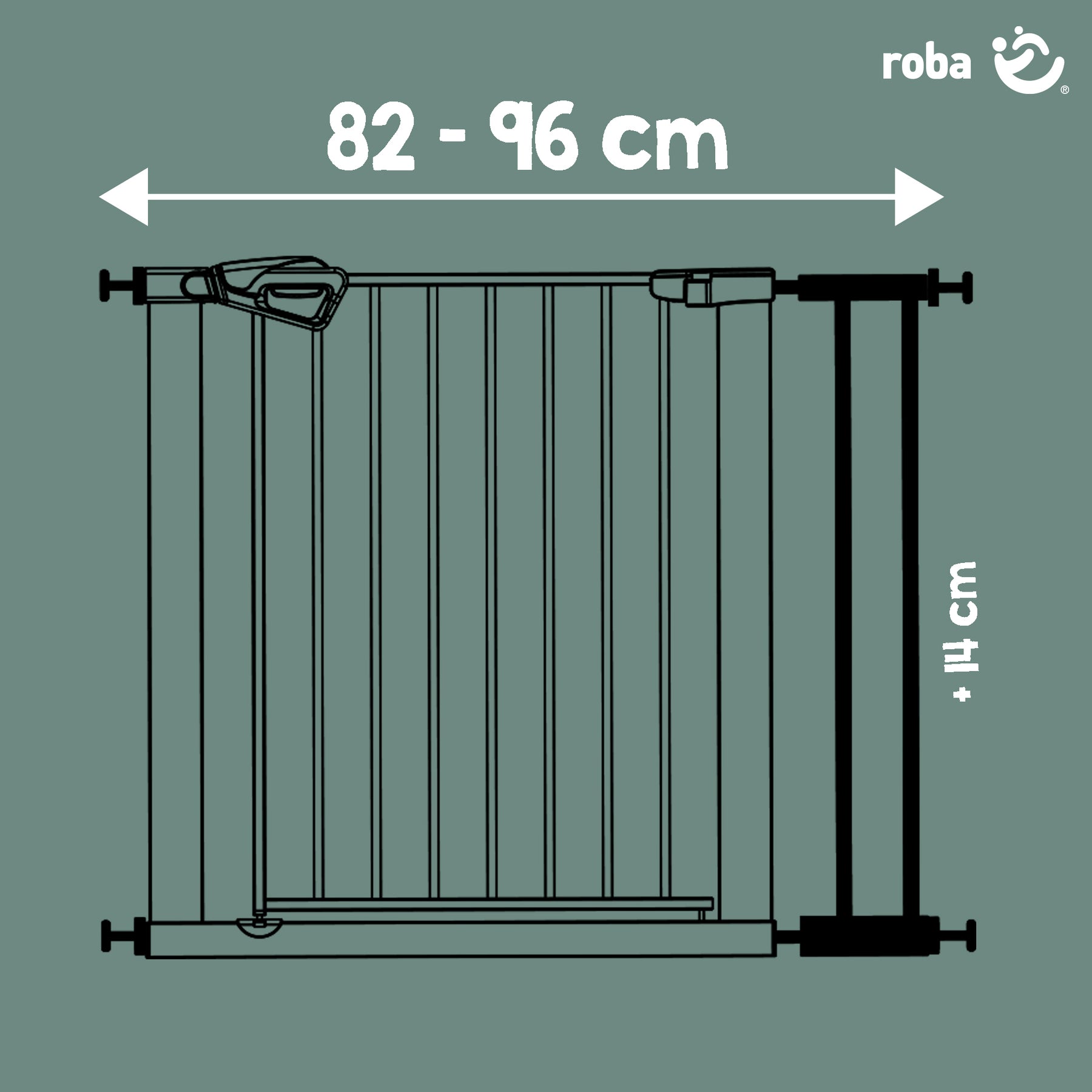 L’élément d’extension roba easySafe+ (variante : 14 cm) permet une extension flexible de la barrière de sécurité roba easySafe+ pour portes et escaliers, testée TÜV et disponible en blanc et noir. L’extension métallique robuste peut être montée à gauche, à droite ou des deux côtés de la barrière de base et peut être installée sans perçage grâce au système de serrage. Selon les besoins, un seul élément peut être utilisé ou deux peuvent être combinés. L’élément de 7 cm (Réf. 215949SM) peut également être combiné avec l’extension de 14 cm (Réf. 215950SM). Cela permet d’adapter la barrière de manière personnalisée aux portes, passages ou escaliers. Avec deux extensions (par exemple 14 cm + 14 cm), la barrière peut être élargie jusqu’à 110 cm. Pour les rampes ou poteaux ronds, une broche en Y correspondante (Réf. 215951SI) est également disponible. Cet élément garantit que la barrière de sécurité de haute qualité, conçue en Allemagne, puisse être utilisée en toute sécurité même dans des conditions structurelles particulières.