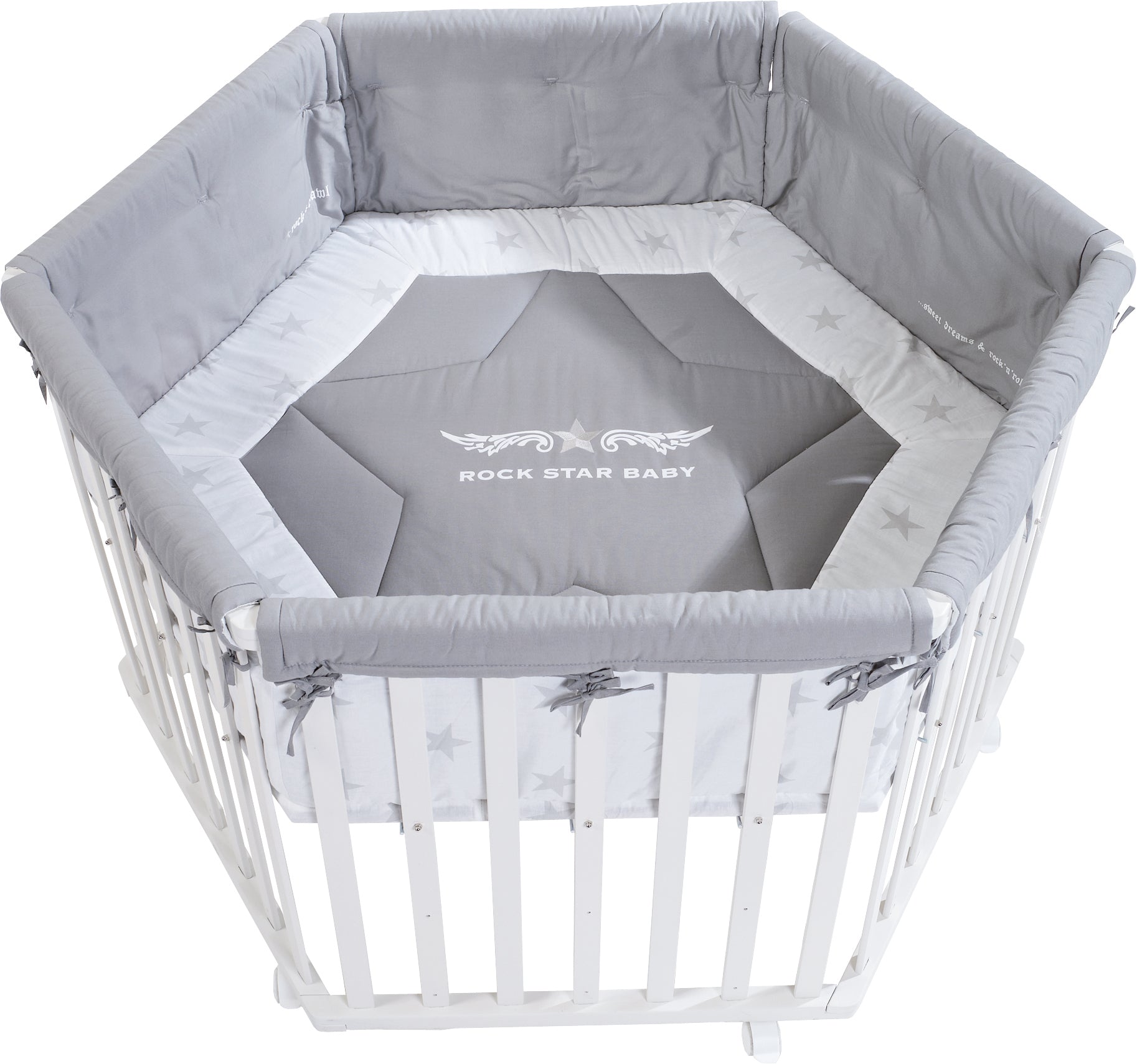 Box 'Rock Star Baby', 100 x 100 cm, box con inserto protettivo e rulli, legno bianco