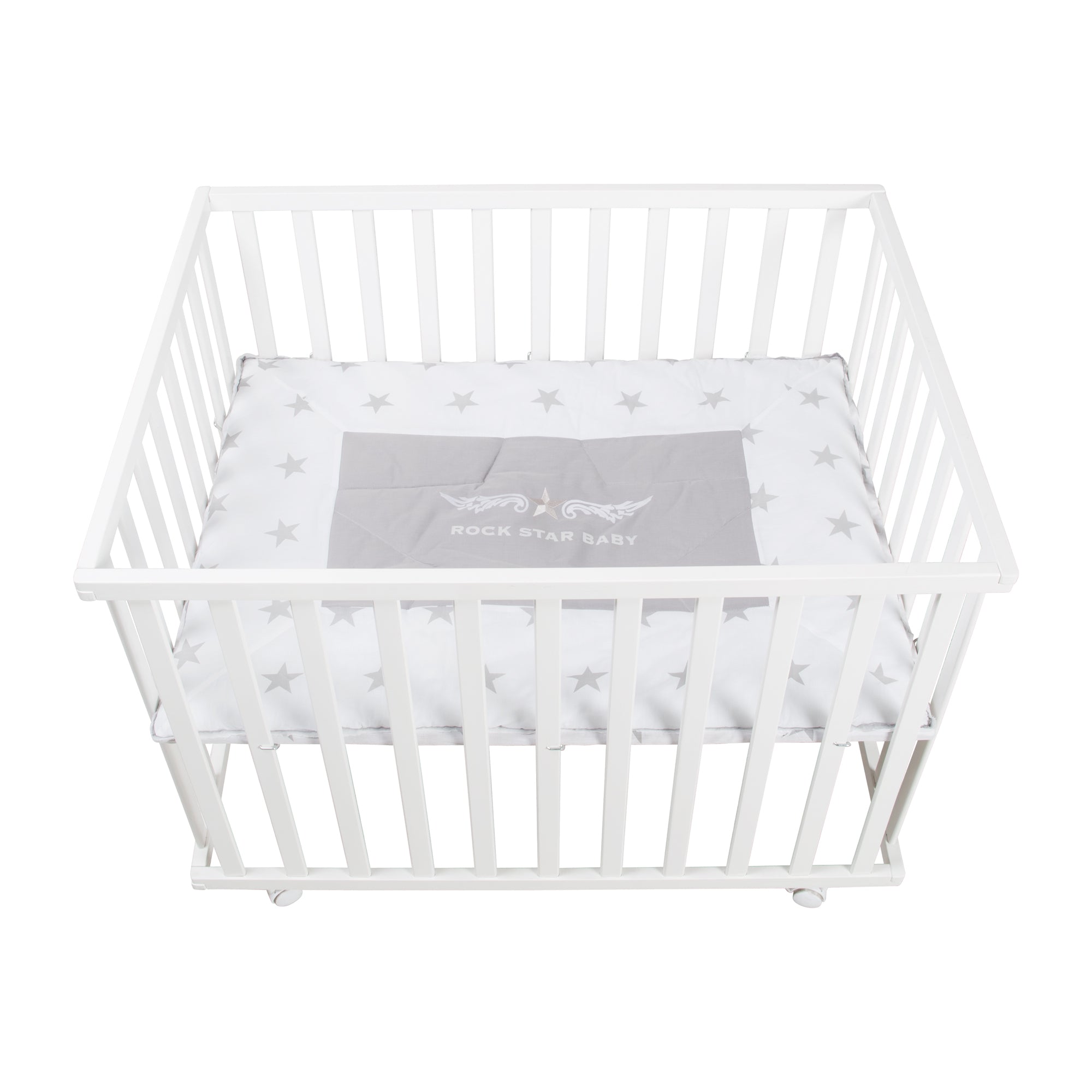 Box 'Rock Star Baby', 75 x 100 cm, box con inserto protettivo e rulli, legno bianco