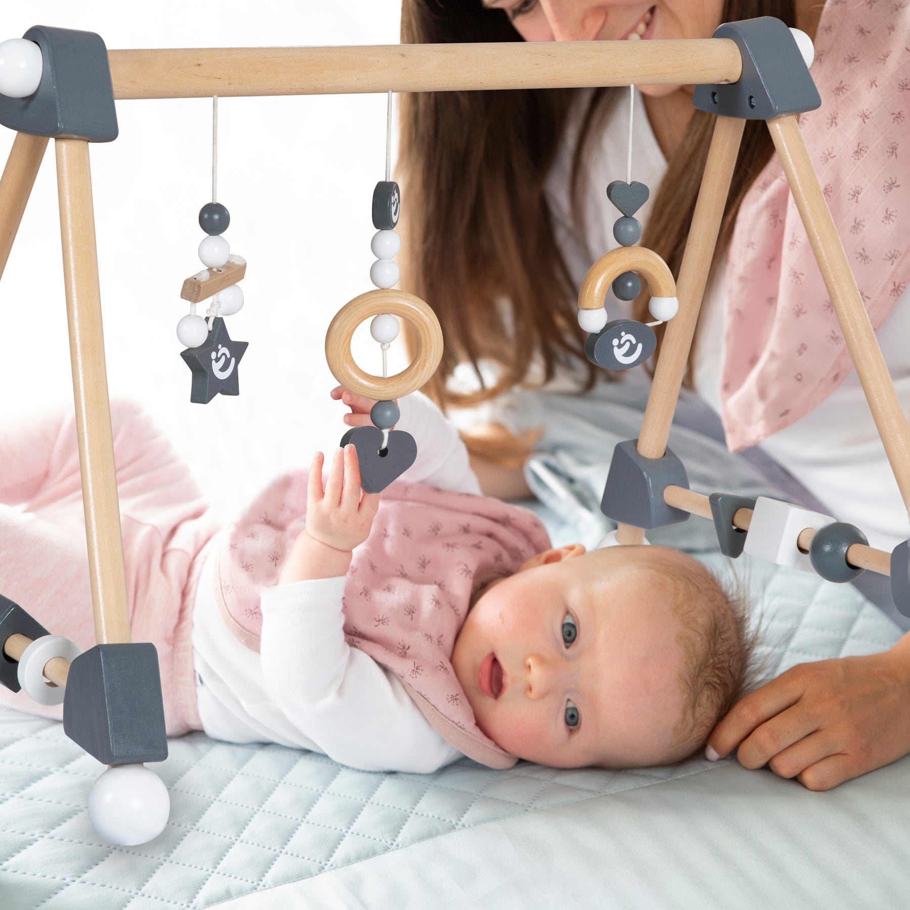 Arco giochi e centro attivitĂ con elementi ludici e da afferrare - Pendenti in legno - Naturale / Antracite