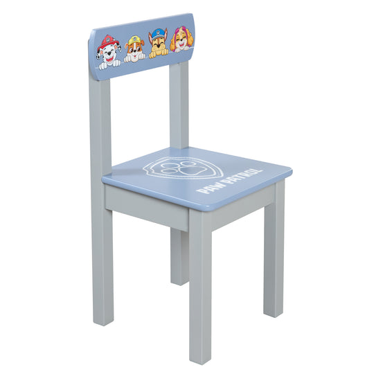 SPECIFICHE: Dimensioni: H 59,0 x L 30,5 x P 29,0 cm - Altezza seduta: 31 cm - Adatta per bambini a partire da 18 mesi - Materiale base: legno - Colori principali: Grigio / Blu (Motivi: Chase, Marshall e Rubble).