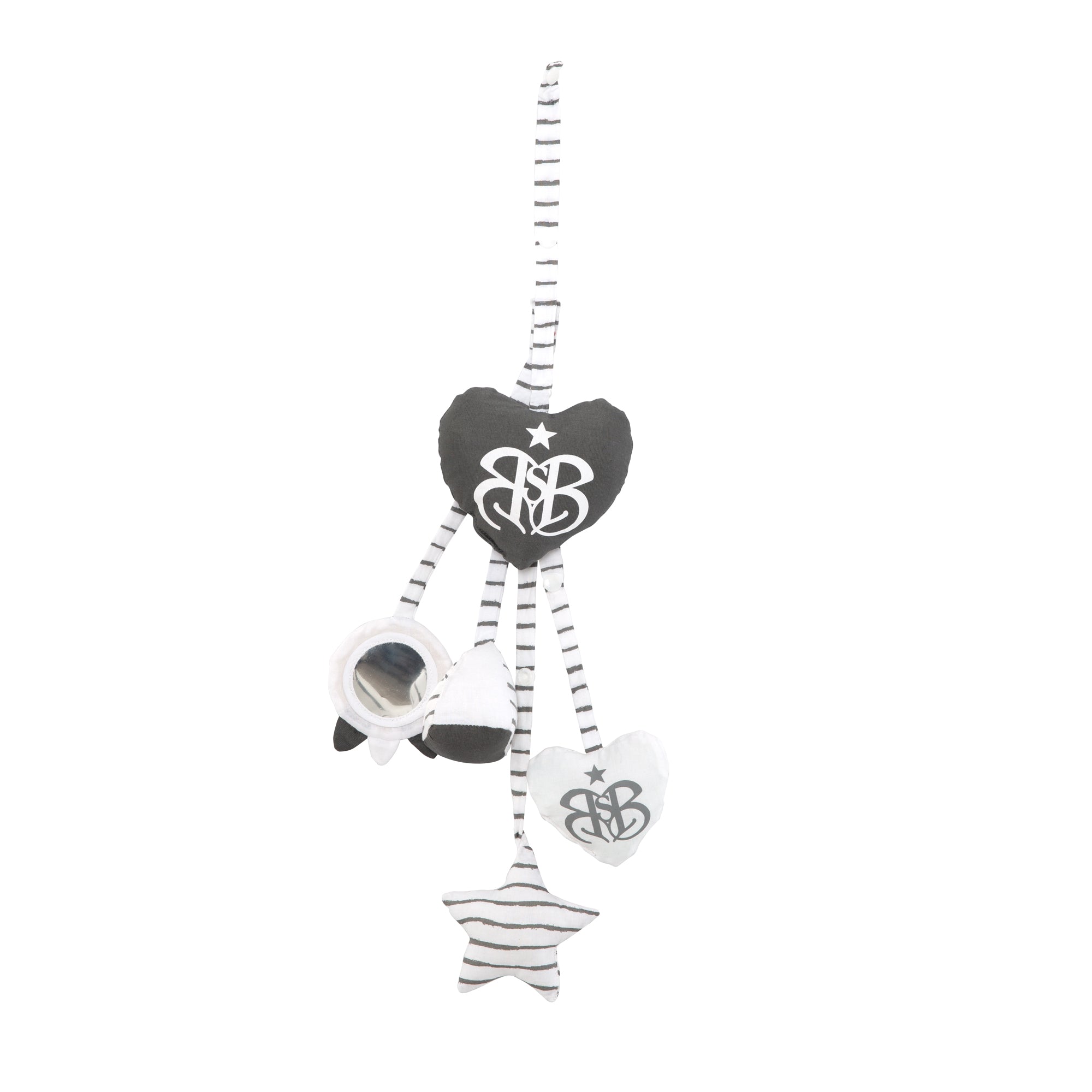 Set di giochi e pendenti 'Lil Cutie' con 5 figure: pallina con sonaglio, cuore con foglio frusciante, nuvoletta con fischietto, stella con specchio e 'Lil Cutie Benny', adatto per il nostro gioco e Montessori Baby Gym.
