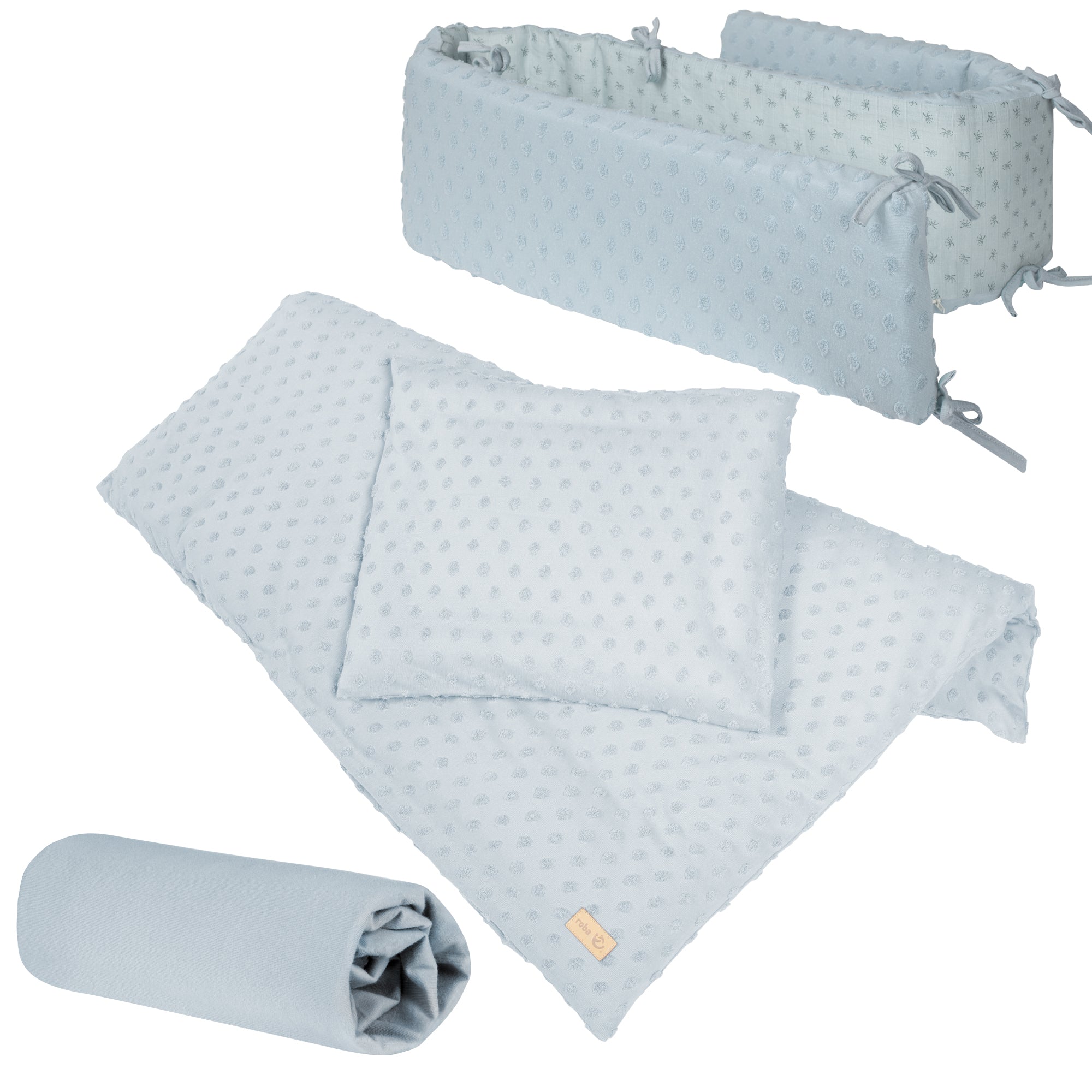 Il set regalo organic Das roba Baby Essentials 'Lil Planet' è realizzato in tessuti di jersey e mussola in cotone biologico, che sono delicati sulla pelle, privi di sostanze nocive, assorbenti e super morbidi. Il set regalo comprende tre bavaglini in jersey e mussola di alta qualità, tre pannolini in mussola di alta qualità e un asciugamano a doppio strato con una simpatica faccia da coniglio in mussola di alta qualità e jersey morbido con punti in spugna. Nella produzione dei prodotti per neonati biologici vengono utilizzati materiali puri, sostenibili e non trattati. Anche dopo numerosi lavaggi, i prodotti per neonati biologici mantengono la loro forma e la loro morbidezza straordinaria. Grazie a un trattamento superficiale speciale e a un prelavaggio, i prodotti rimangono super morbidi. La linea di tessuti roba Organic 'Lil Planet' è disponibile nei colori di tendenza rosa/mauve, azzurro/sky e grigio argento. La linea di tessuti è prodotta in modo sostenibile secondo gli standard Global Organic Textile Standard GOTS e in condizioni sociali eque secondo l'Business Social Compliance Initiative (BSCI). La linea è certificata secondo i rigorosi criteri ecologici conformemente allo standard OEKO TEX® Standard 100. Bavaglini: con due bottoni a pressione, in jersey e mussola 100% cotone biologico GOTS, spugna 80 % cotone GOTS, 20 % poliestere, 1x azzurro/sky con motivo, 1x azzurro/sky uni, 1x grigio argento uni, misure: 23x30 cm. Pannolini: 2x grigio argento con motivo e 1x grigio argento uni, 100 % cotone biologico, misure: 80x80 cm. Asciugamano: frontale: 100 % cotone biologico, retro: 80 % cotone GOTS, 20 % poliestere. Misure: 40 x 40 cm. Colore: grigio argento. Tutti gli articoli sono lavabili a 40°C in modo ecologico.