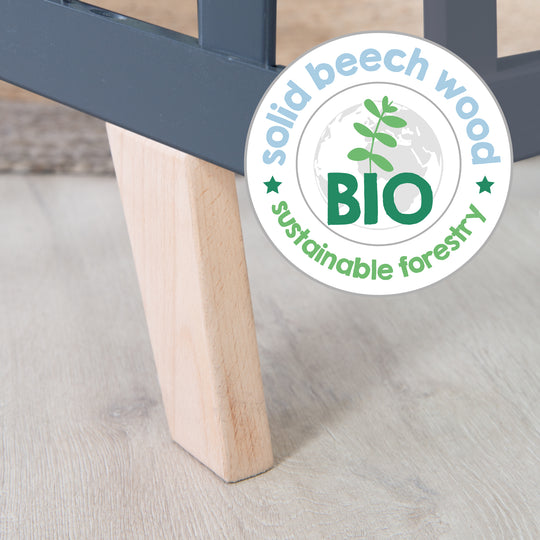 Parapetto per bambini di alta qualità: Box per bambini in legno di dimensioni 75 x 100 cm - Materiale di base: legno multilaminato & superficie di riposo: MDF - Struttura stabile grazie ai piedi in legno massello - Bastoni piatti arrotondati, lavorati ecologicamente e privi di schegge.