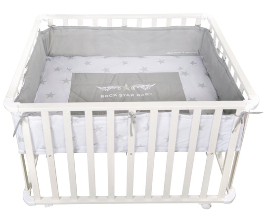 Box 'Rock Star Baby', 75 x 100 cm, box con inserto protettivo e rulli, legno bianco