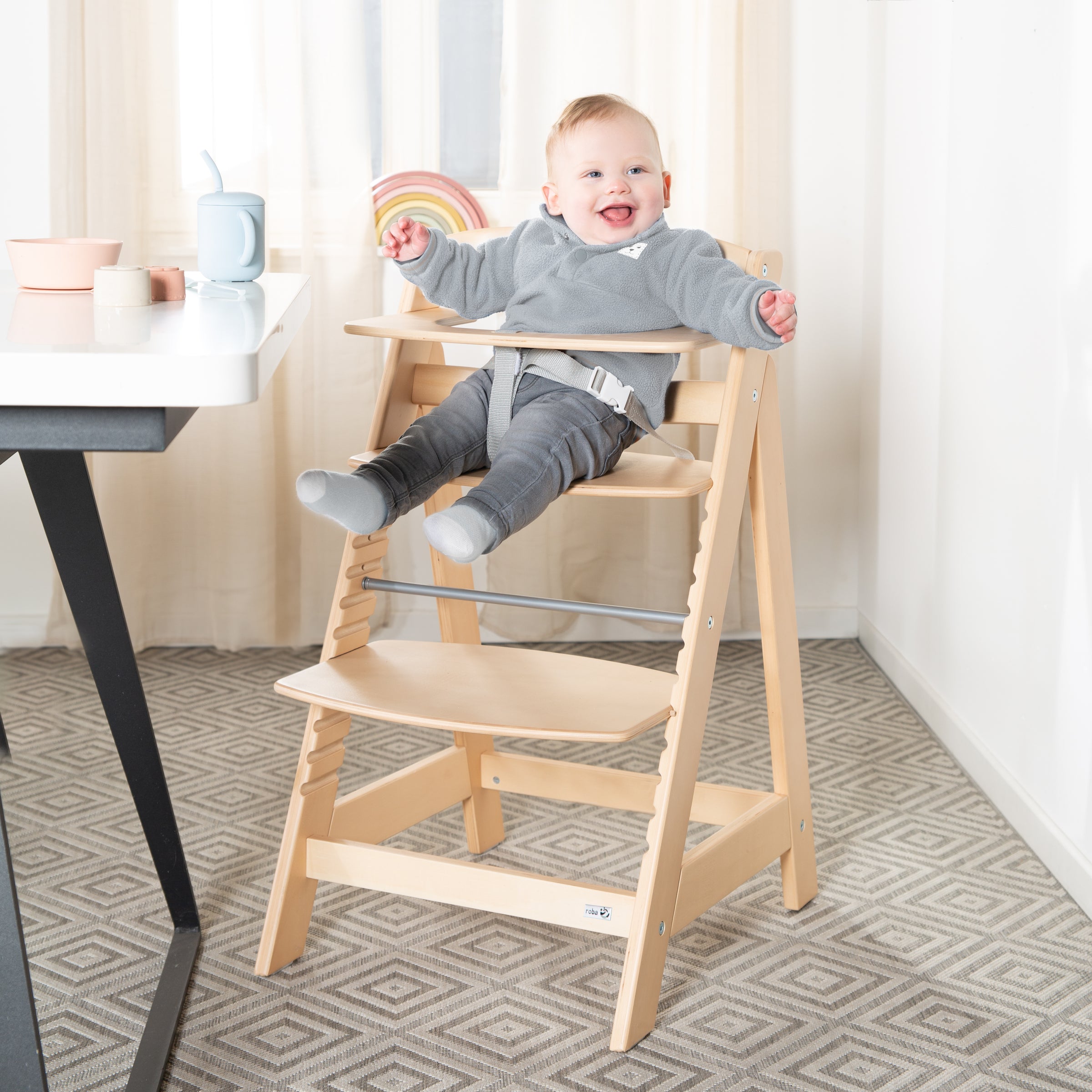 Aus hochwertigem Holz gefertigt und in sanften Farben gestaltet, begleiten unsere Hochstühle Ihr Kind über viele Jahre.