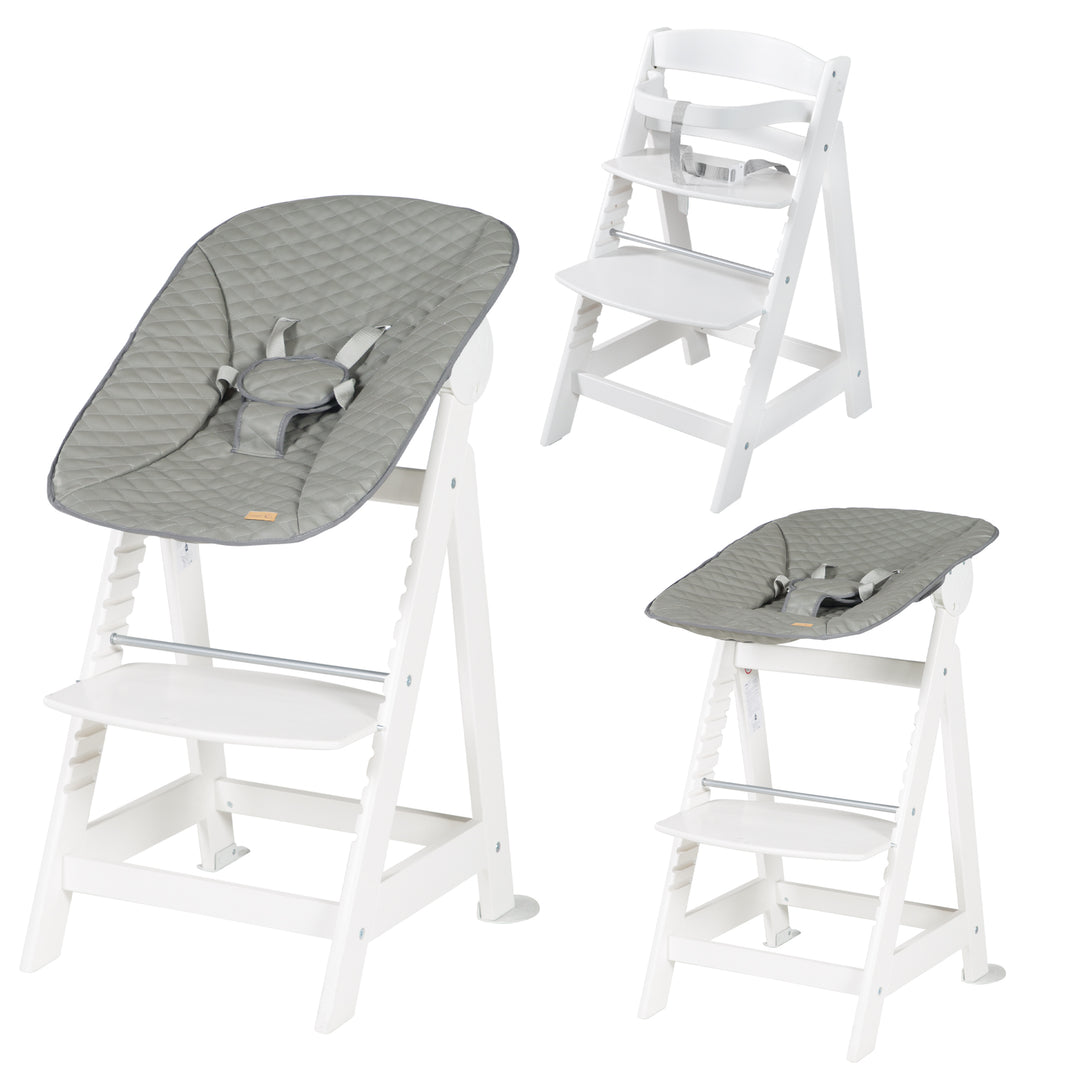 Ab Geburt: Der Roba Born Up ist mit einem Neugeborenen-Aufsatz ausgestattet und eignet sich bereits ab dem ersten Tag. Die Liegefunktion sorgt für eine ergonomische Position und wächst später zum klassischen Hochstuhl mit.