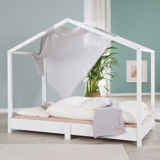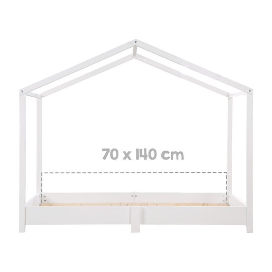 Das roba Hausbett in 70x140 cm ist eine hervorragende Wahl für Eltern, die ein stilvolles und zugleich funktional durchdachtes Bett für ihr Kind suchen. Mit seinem einladenden Hausdesign und der bodentiefen Konstruktion (16 cm bis zur Bettkante) schafft dieses Bett nicht nur einen gemütlichen Schlafplatz, sondern auch eine inspirierende Spielumgebung. Hergestellt aus hochwertigem Massivholz, ist dieses Bett besonders robust und langlebig. Die Kombination dieser Materialien gewährleistet eine solide Konstruktion, die den Anforderungen des täglichen Gebrauchs standhält. Die Oberfläche ist in zeitlosem Weiß lackiert, was nicht nur eine freundliche Atmosphäre schafft, sondern auch zu den unterschiedlichsten Einrichtungsstilen passt. Mit den Maßen 122 x 80 x 146 cm (H x B x T) bietet das Hausbett ausreichend Platz für eine Matratze im Standardmaß 70 x 140 cm. Die niedrige Einstiegshöhe erleichtert dem Kind den selbständigen Betteinstieg. Besonders hervorzuheben ist, dass das roba Hausbett nach den Prinzipien der Pädagogin Montessori entwickelt wurde. Das Ziel ist, die Unabhängigkeit und Selbstständigkeit des Kindes zu fördern, indem es die Chance bekommt, seine Umgebung aktiv zu erkunden und zu gestalten. Für zusätzliche Gestaltungsmöglichkeiten bietet roba auch einen passenden Hausbettbezug in neutralem Grau an (Art.-Nr. 0287). Dieser Bettbezug ergänzt das Hausbett perfekt und sorgt für eine harmonische und wohnliche Atmosphäre im Kinderzimmer. Insgesamt ist das roba Hausbett 70x140 cm eine hervorragende Wahl für Eltern, die hohe Ansprüche an Design, Qualität und Funktionalität stellen. Mit seinen hochwertigen Materialien, dem durchdachten Design und den pädagogischen Aspekten bietet es eine ideale Schlaf- und Spielumgebung für Kinder. Bitte beachten Sie, dass kein Lattenrost und keine Matratze im Lieferumfang enthalten sind. Für optimale Unterstützung und Komfort kann ein Rolllattenrost (Art.-Nr. 1182) separat erworben werden, der perfekt auf das Bett abgestimmt ist.